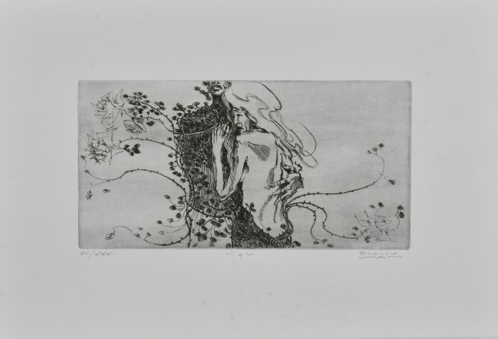 Enrico Villani LO SPAVENT'AMORE incisione su carta, cm 34x40 (lastra cm...
