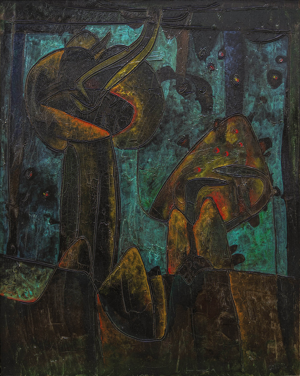 Gianni Dova 1925 - 1991 Senza titolo Olio su tela 60 x 50 cm (23.62 x 19.69 in. ) Firma in basso a destra Provenienza Collezione privata, Milano Certificato L’opera è accompagnata da certificato di autenticità su fotografia dell’artista.