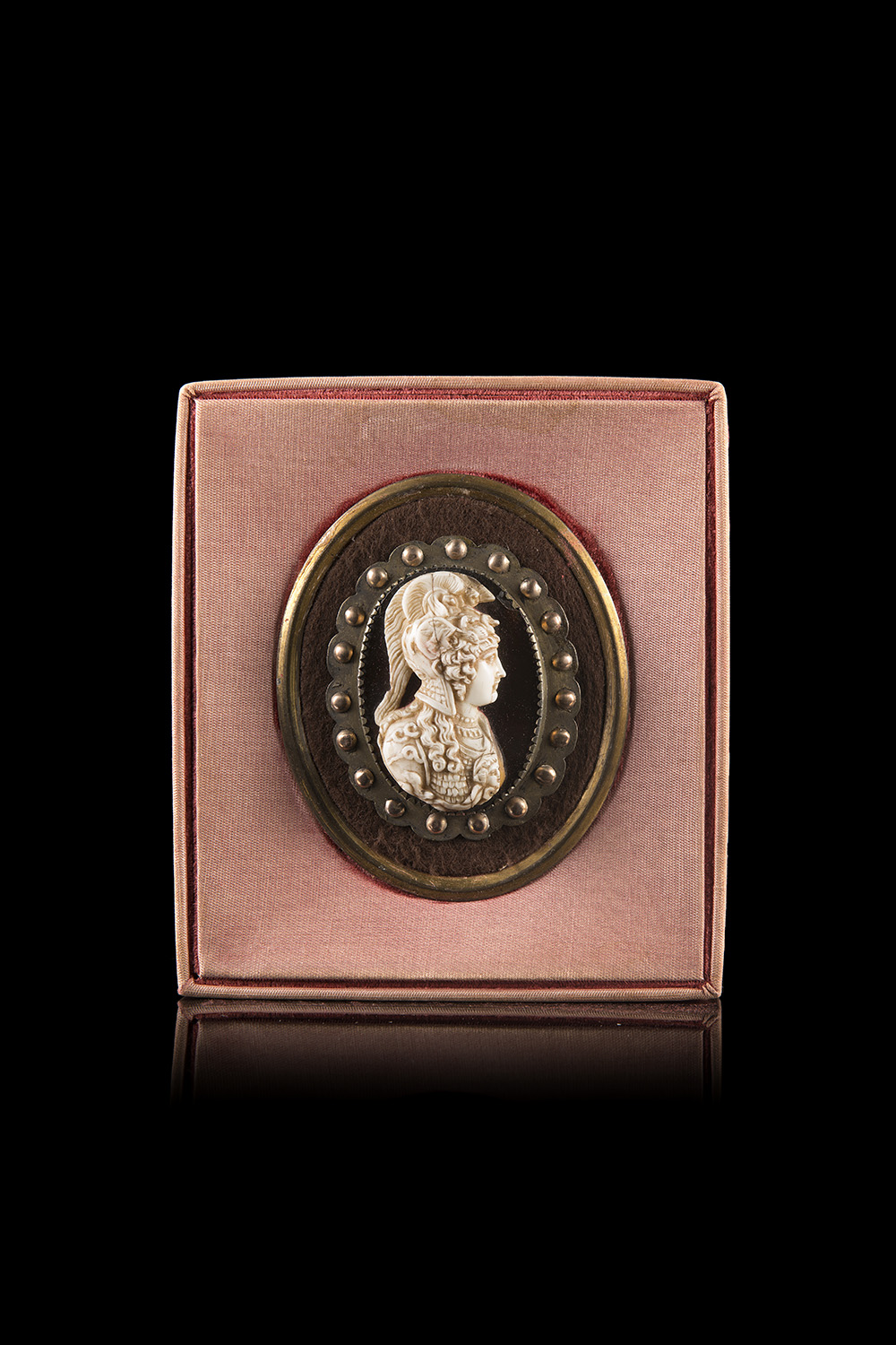 19th-century art "Minerva" ivory profile on hardstone (cm 6x4,5) (minor defects)