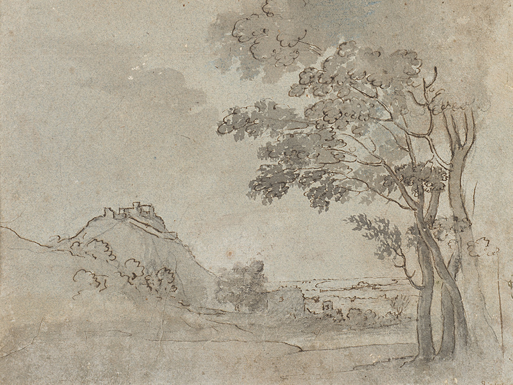 Pen and black ink, grey washed, on light blue prepared paper 187x245 mm.
