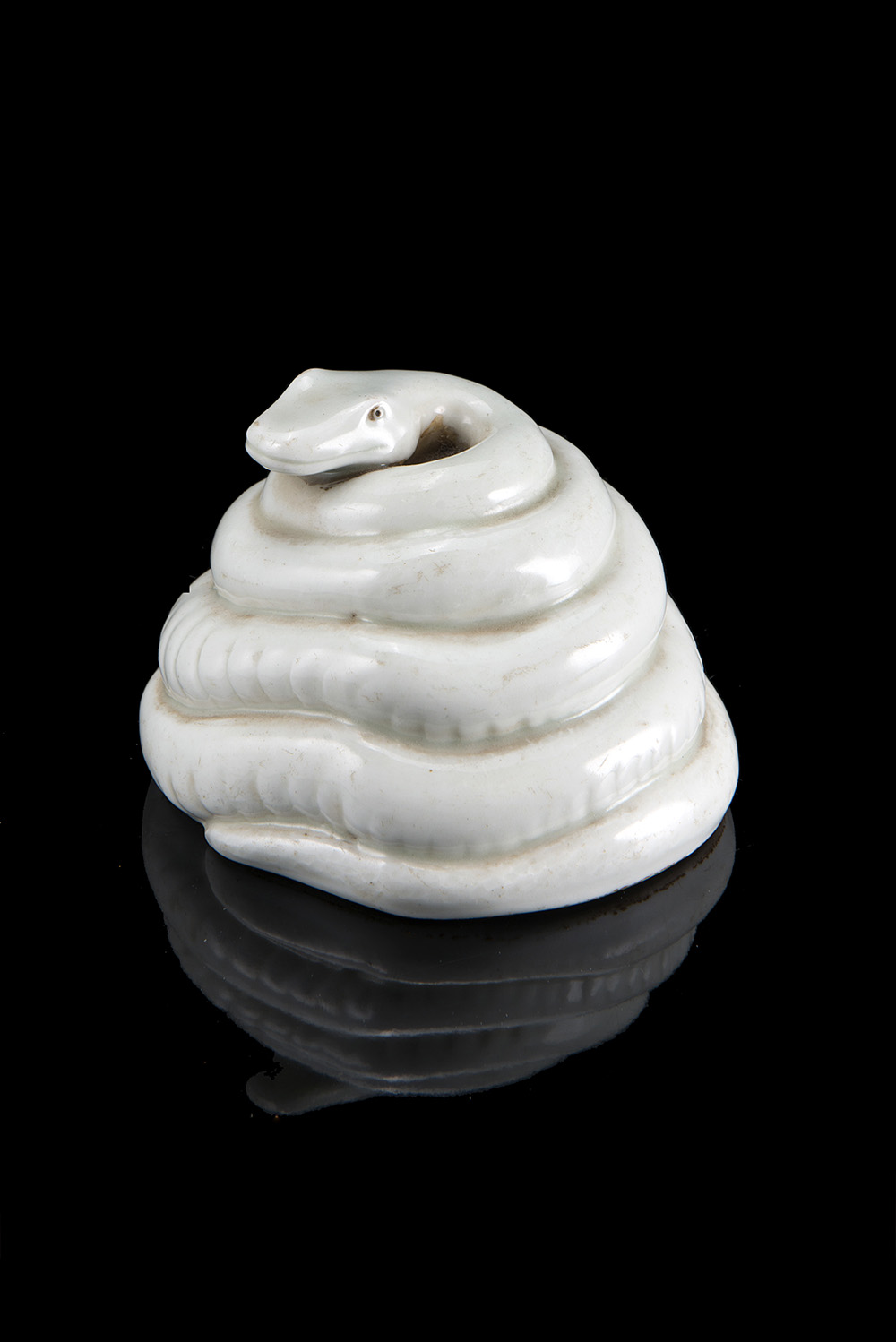 Manifattura del secolo XIX. Serpente avviluppato in porcellana bianca (h. cm 8)