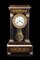 Pendola a portico con cassa intarsiata in legni vari a motivi vegetali, basi e capitelli in bronzo dorato.