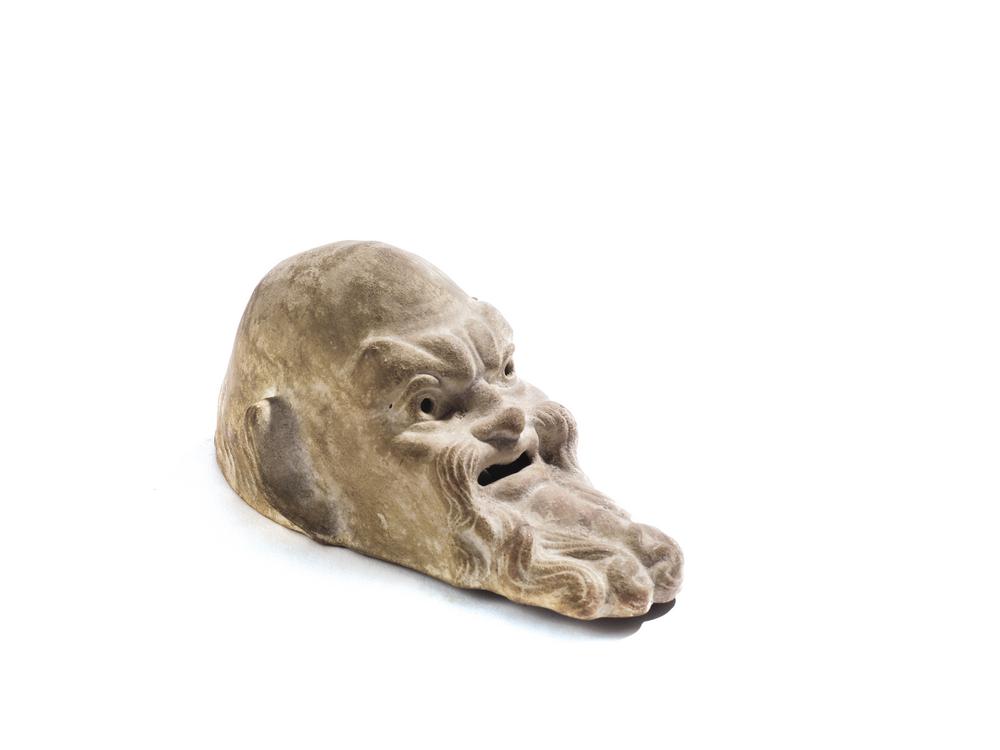 MASCHERA DI SATIRO DATAZIONE: IV-III sec. a.C. MATERIA E TECNICA: argilla figulina camoscio, modellata a stampo Maschera raffigurante in modo vivace e grottesco un satiro anziano e calvo con lunghe orecchie appuntite, fronte aggrottata, bocca aperta e barba a riccioli fluenti PRODUZIONE: ceramica magno greca STATO DI CONSERVAZIONE: ricomposta da due frammenti DIMENSIONI: lungh. cm 19 Il lotto, in base alla legge italiana, non è esportabile / This lot, according to Italian law, can not be exported