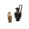 OINOCHOE E PICCOLA LEKYTHOS DATAZIONE: V-IV sec. a.C. MATERIA E TECNICA: argilla figulina rosata, vernice nera lucente, modellate a tornio veloce Oinochoe a bocca trilobata a vernice nera, collo troncoconico distinto dalla spalla mediante un anello plastico, corpo ovoide, piede ad echino, alta ansa sinuosa, impostata dall’orlo alla spalla; piccola lekythos, con bocchello ad echino rovescio, collo cilindrico, corpo troncoconico, piede modanato, ansa a nastro impostata dal collo alla spalla; decorata con linguette radiali (2) PRODUZIONE: ceramica apula a vernice nera, ceramica campana a figure nere STATO DI CONSERVAZIONE: integre DIMENSIONI: alt. cm 13 e cm 7,8 PROVENIENZA: New Hermes Arte Antica, Arezzo Il lotto, in base alla legge italiana, non è esportabile / This lot, according to Italian law, can not be exported
