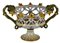 Alzata centrotavola manifattura Ginori, fine secolo XIX in ceramica policroma, anse a serpenti, vasca traforata dipinta con due puttini alati, altezza cm 16 Lievi danni