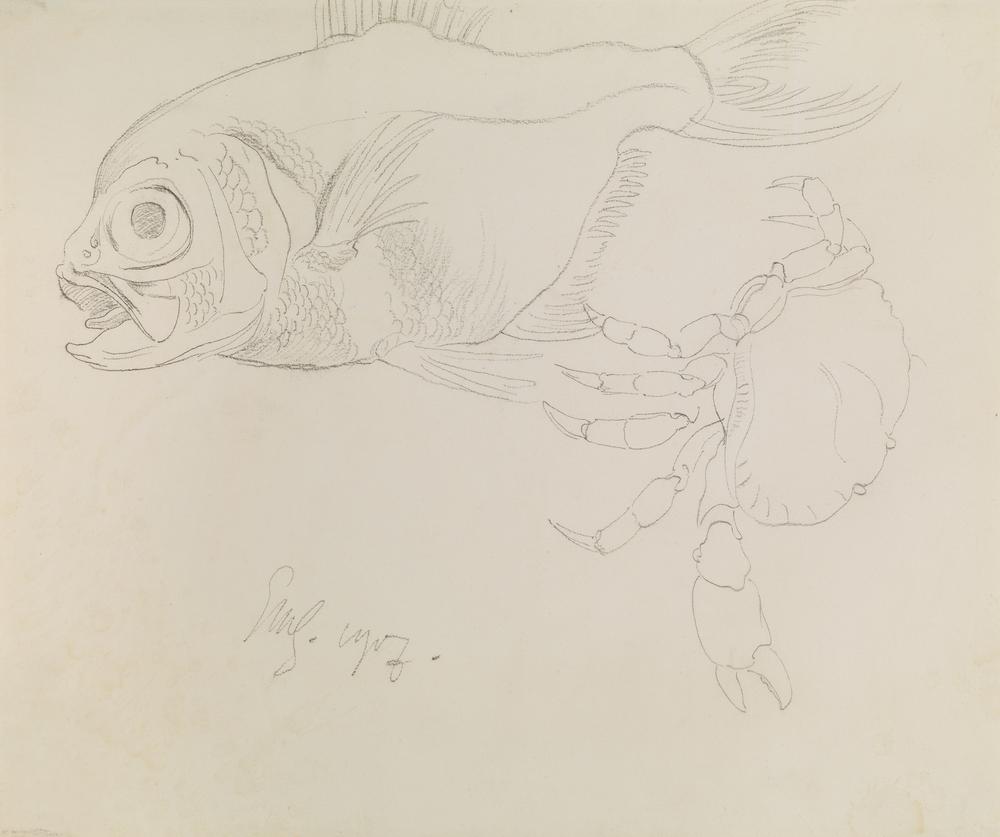 Ernst Moritz Geyger COPPIA DI DISEGNI Studi di cigno e aironi. Matita di grafite su carta avorio. mm 327x393. Firmato Studio di pesce e granchio. Matita di grafite su carta avorio. mm 327x393. Firmato (2)