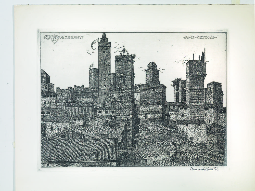 Benvenuto Disertori TORRI DI SAN GIMIGNANO. 1917 Acquaforte e bulino. mm...
