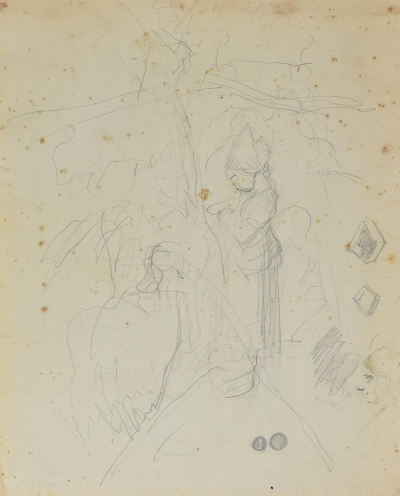 Niccolò Cannicci DONNA AL TELAIO Matita di grafite. mm 315x257. Firmato. Al verso altri studi.