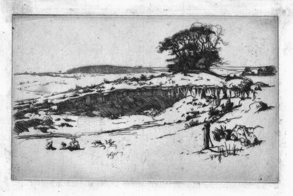 Scuola inglese XIX secolo PAESAGGIO Acquaforte e puntasecca. mm 125x202. Profondamente affine al segno e allo stile di Francis Seymour Haden, questo foglio non trova riscontro nel catalogo ragionato dell’artista. Ottima impressione. Grandi margini.