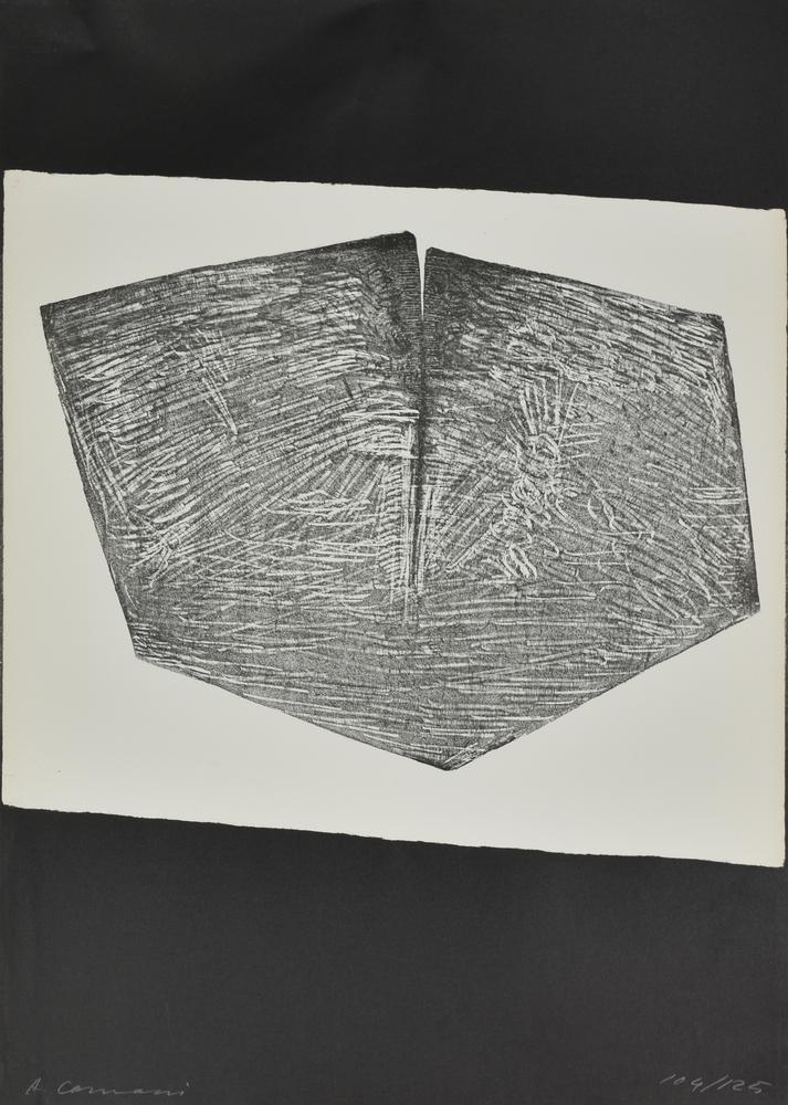 Arturo Carmassi COMPOSIZIONE N.1. 1960 Litofìgrafia. mm 645x450 Firmata a matita e numerata “104/125”. Margini editoriali. Un piccolo strappo sul lato sinistro.