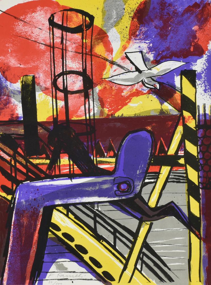 Fernando Farulli PIOMBINO 1968 Cartella (mm 505x375) di 10 litografie, edita nel 1968 in 125 esemplari numerati (di cui 25 destinati all’autore). Ciascun foglio, contenuto in un inserto originale, è firmato a matita e numerato. Completo di cartella editoriale, colophon con presentazione di Renato Guttuso ed indice delle tavole. Esemplare integro in buono stato di conservazione.