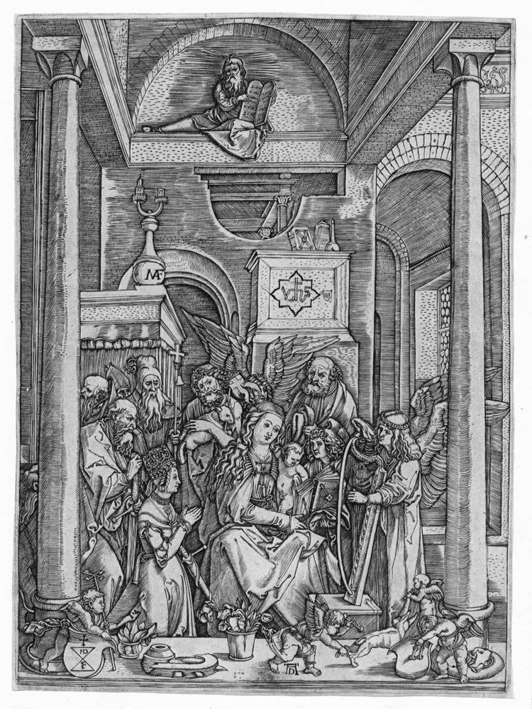 Marcantonio Raimondi (1482 – 1530 ca.) LA VITA DELLA VERGINE Serie completa ed omogenea di 17 bulini. mm 287x212 ca. ciascuna. TIB 27/14, 621/637. Autorevole replica dell’ omonima serie di xilografie incise da Albrecht Dürer del quale recano il monogramma inciso. A questa serie è legata la famosa vicenda giudiziaria che contrappose il maestro tedesco al Raimondi accusato di plagio. II stato su 2 dopo la numerazione. Bellissime prove stampate su carta vergellata con filigrana non decifrabile (su tre tavole). Rifilate intorno o poco oltre l’impronta della lastra, sottile margine oltre la linea di contorno sempre visibile.