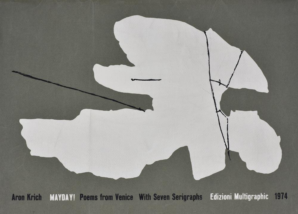 Aron Krich MAYDAY ! 1974 Cartella (mm 500x360) di 7 serigrafie, edita in 50 esemplari numerati (di cui 20 fuori commercio). Esemplare n.28. Ciascun foglio è firmato a matita dell’artista e numerato. Completo di cartella editoriale e colophon. Esemplare integro in buono stato di conservazione.