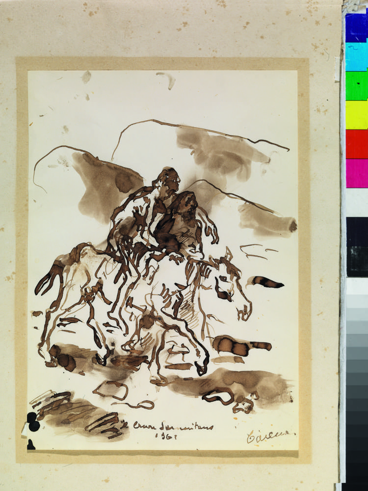 Felice Carena IL BUON SAMARITANO Acquerello bruno su carta bianca liscia. mm 295x210. Firmato, titolato e datato “1961”.