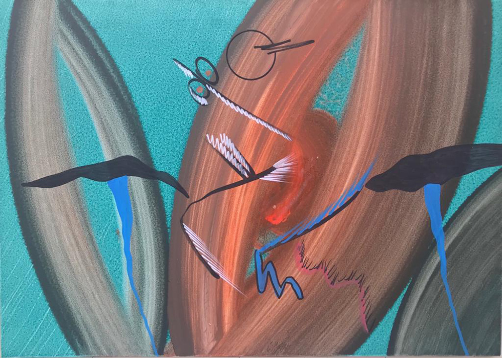 Sergio Dangelo Milano 1932 La jongle 1990 tecnica mista su tela 50x70 Certificato di autenticità