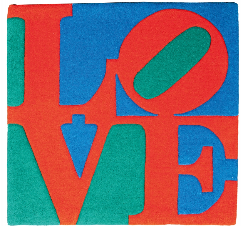 ROBERT INDIANA (1928-2018) Classic lovetappeto cardato a mano cm 77x77...