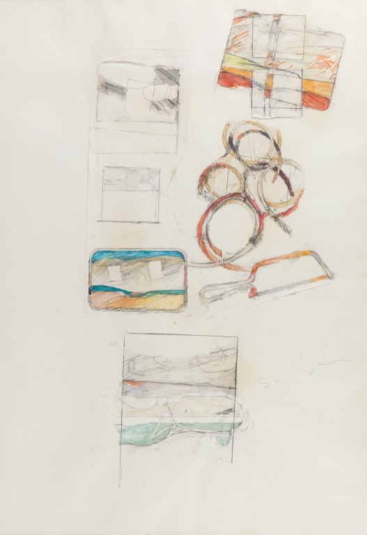MARIO SCHIFANO (1934-1998) Porte bianchecollage e matita su carta cm...