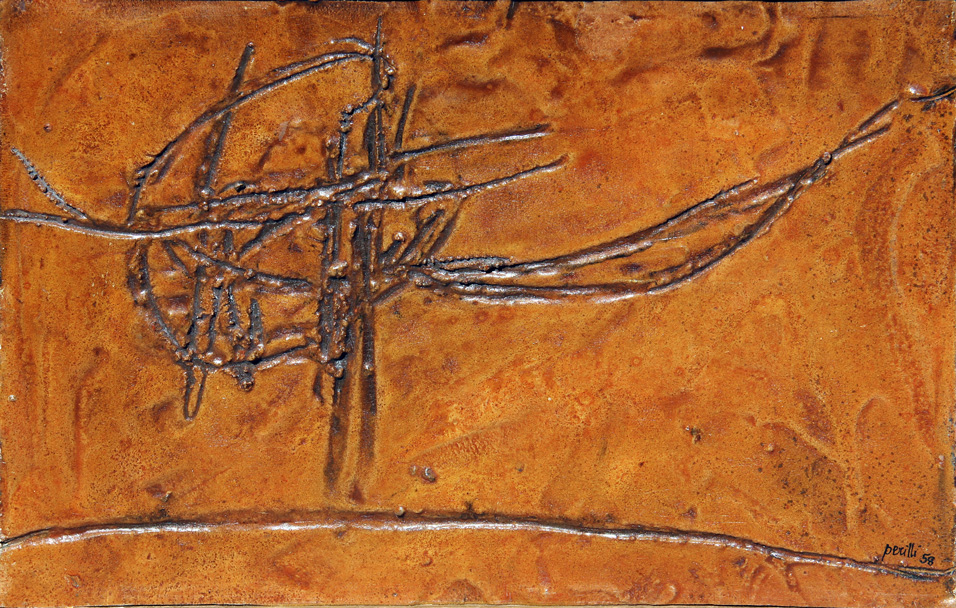 Achille PERILLI (Roma 1927-01-28) Eburneo 1958 tecnica mista su tavola cm. 23...