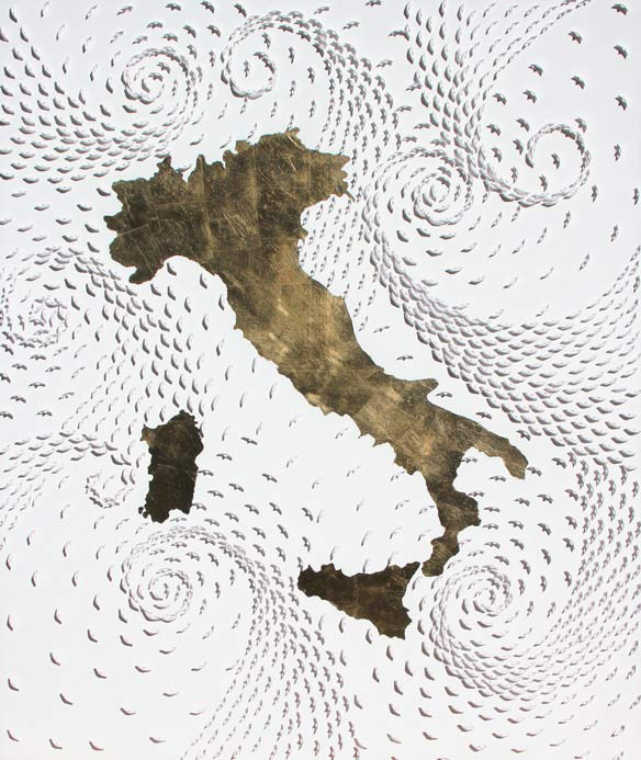 Riccardo GUSMAROLI (Verona, 1963) Italia oro 2009 barchette in carta e foglia d'oro su tela cm. 180 x 150