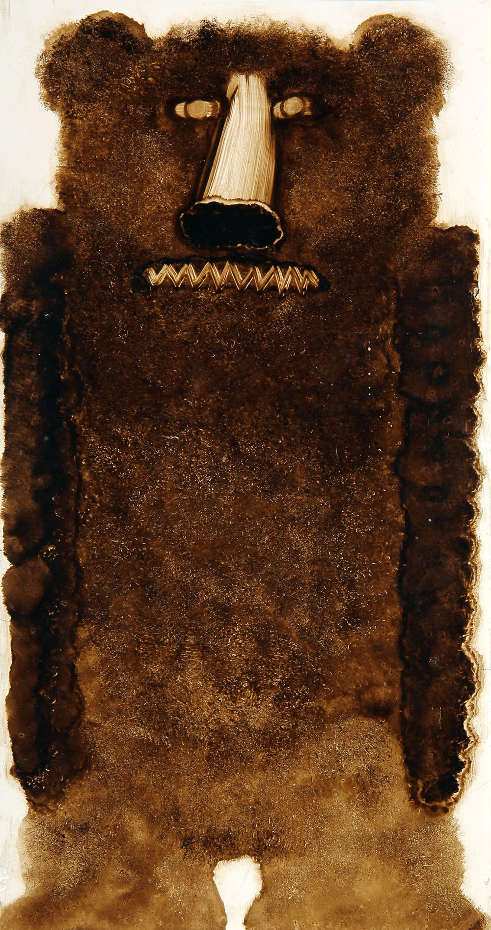 Pino PASCALI ((Bari 1935-10-19 Roma 1968-09-11) Orso bruno 1963 bitume su faesite cm. 55 x 27.5Etichetta di Sandro Lodolo (al retro)