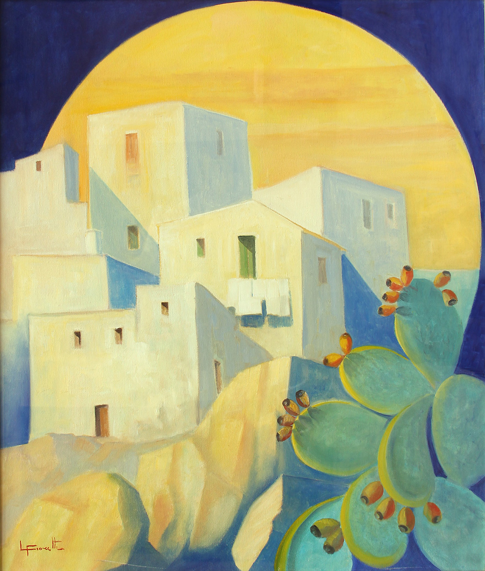 Luigi FIORETTI Paesaggio siciliano 2002 olio su tela cm. 80 x 70Firma "L. Fioretti" (in basso a sinistra) Titolo, firma, data "Paesaggio siciliano, L. Fioretti, 02" (al retro)