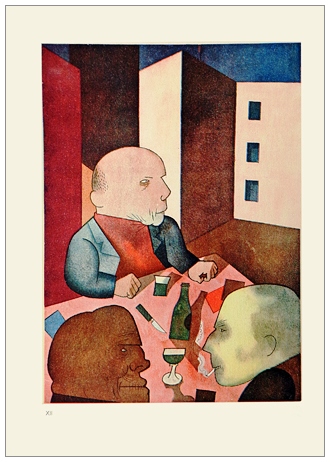GEORGE GROSZ Berlino (Germania) 1893 – Berlino (Germania) 1959 Der Mensch ist gut (l’uomo è buono) 1921 Litografia a colori tav.XII. (34,5 x 24,5 foglio – 27,5 x 20 lito.) L’opera fa parte della cartella “Ecce Homo” pubblicata nel 1923, Editore Malik – Verlag, Berlino, Stampatore Dr. Selle & Co. A.G., Berlino, con 100 litografie di cui 16 a colori da acquerelli e 84 in bianco e nero da disegni a inchiostro eseguiti da Grosz dal 1915 al 1922. Pubbl.: Catalogo Collezione Museo MoMa, New York (USA) “Catalogo opere George Grosz 1893 – 1959” a cura di Ivo Kranzfelder, 1994, Editore Benedikt Taschen, Colonia. base: A OFFERTA