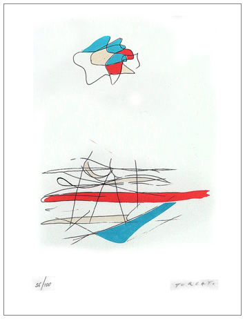 GIULIO TURCATO Mantova 1912 – Roma 1995 Senza titolo Litografia a colori es.56/100. Firma in b. a d.; sul verso etichetta “Certificato di garanzia Casa Editrice La Nuova Foglio S.p.A., Pollenza”. (39,2 x 30,5 foglio – 21,5 x 18 lito.) base: A OFFERTA