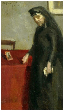 MANLIO MARTINELLI Livorno 1884 – Pisa 1974 Madre di Guerra 1919 Olio su tavola 30 x 16,5. Firma e data in a. a s.; sul verso firma, titolo e data + etichetta “galleria Cocchini, Livorno”. base: A OFFERTA