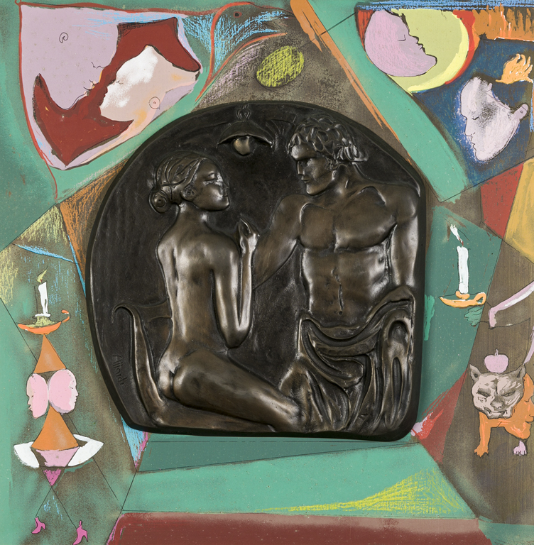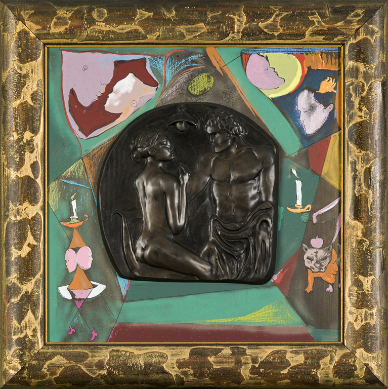 Bassorilievo in bronzo applicato su tavola serigrafata