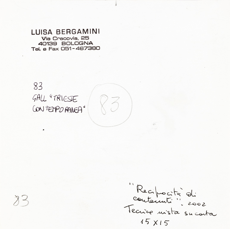 LUISA BERGAMINIReciprocità di contenuti, 2002Tecnica mista su cartacm 15x15...