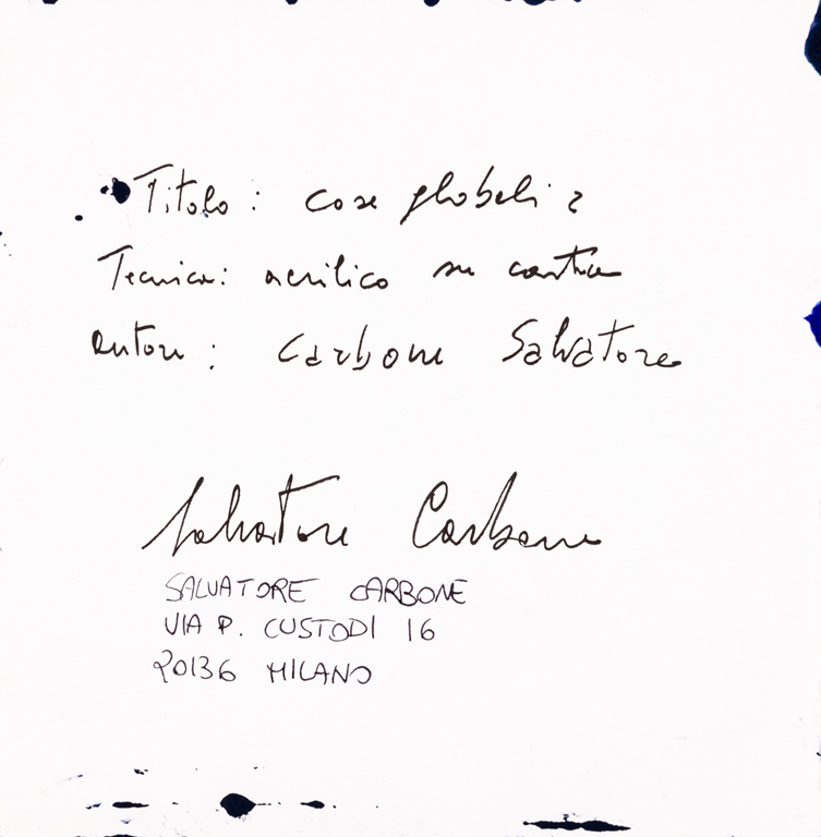 SALVATORE CARBONE (1952)Cose globali 2Acrilico su cartacm 15x15Firma, titolo...