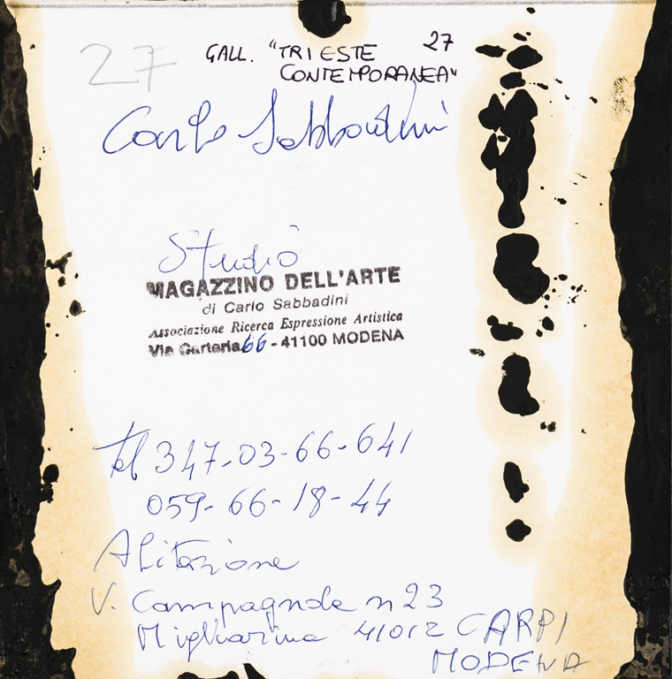 CARLO SABBADINISenza TitoloTecnica mista e collage su cartoncinocm 15x15Firma...