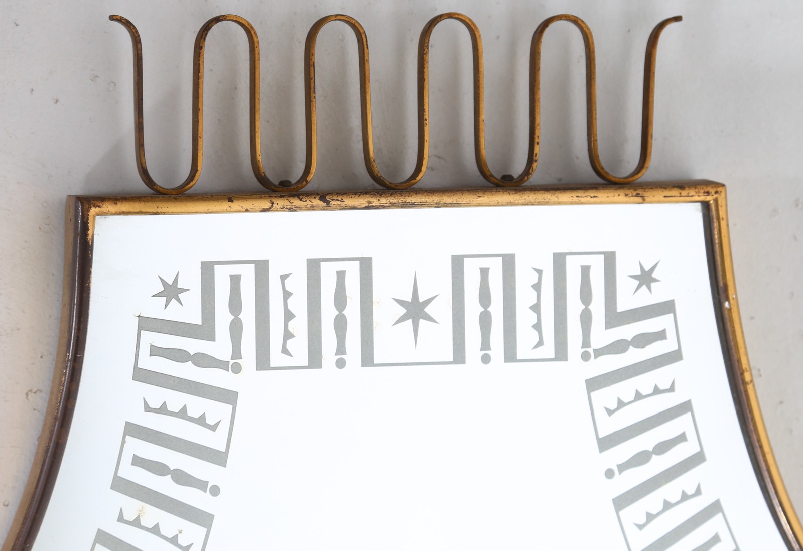 BUZZI TOMASO (1900 - 1981) Specchio da parete. -. Cm 64,00 x 128,00 x 31,00. Ottone e vetro, anni 40 (vetro scheggiato)