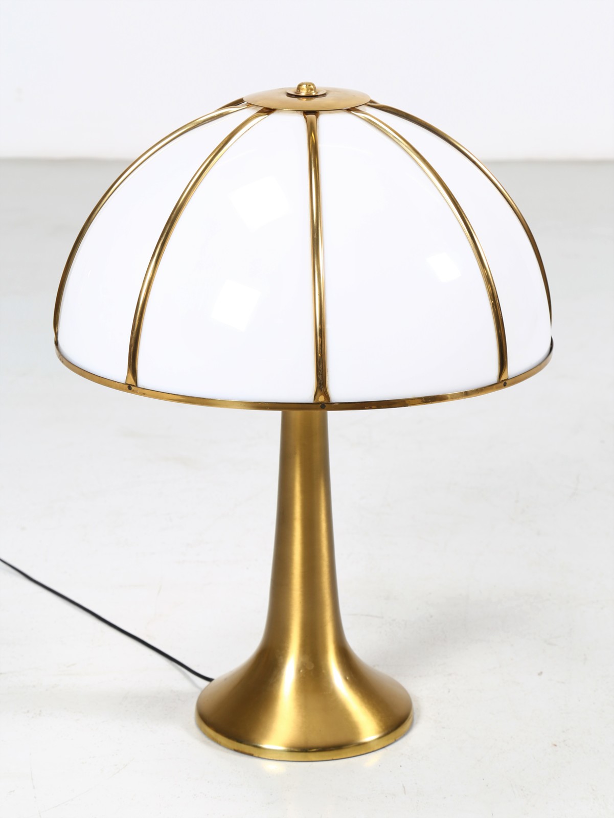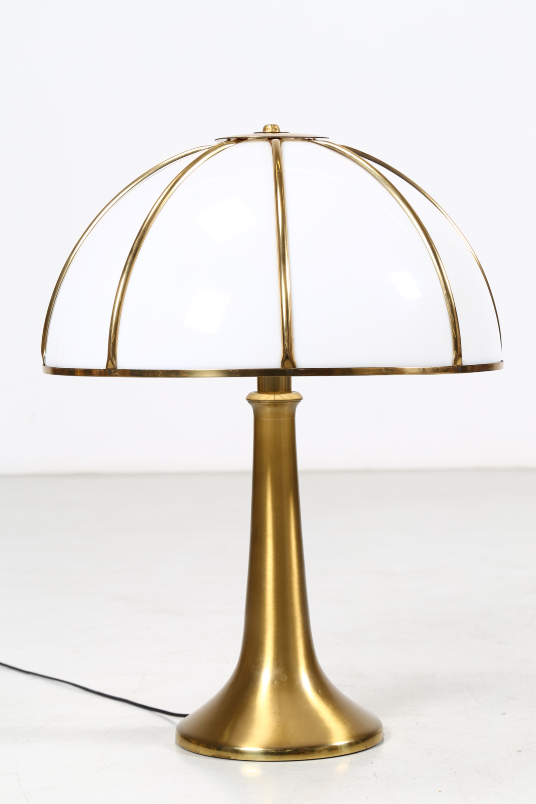 CRESPI GABRIELLA (n. 1922) Table Lamp "Fungo". . Cm 60,00 x 80,00 x 60,00. Brass, perspex, medium size. "Fungo" from Rising Sun series, 70s. Signature present. Work included in the Gabriella Crespi Archive.