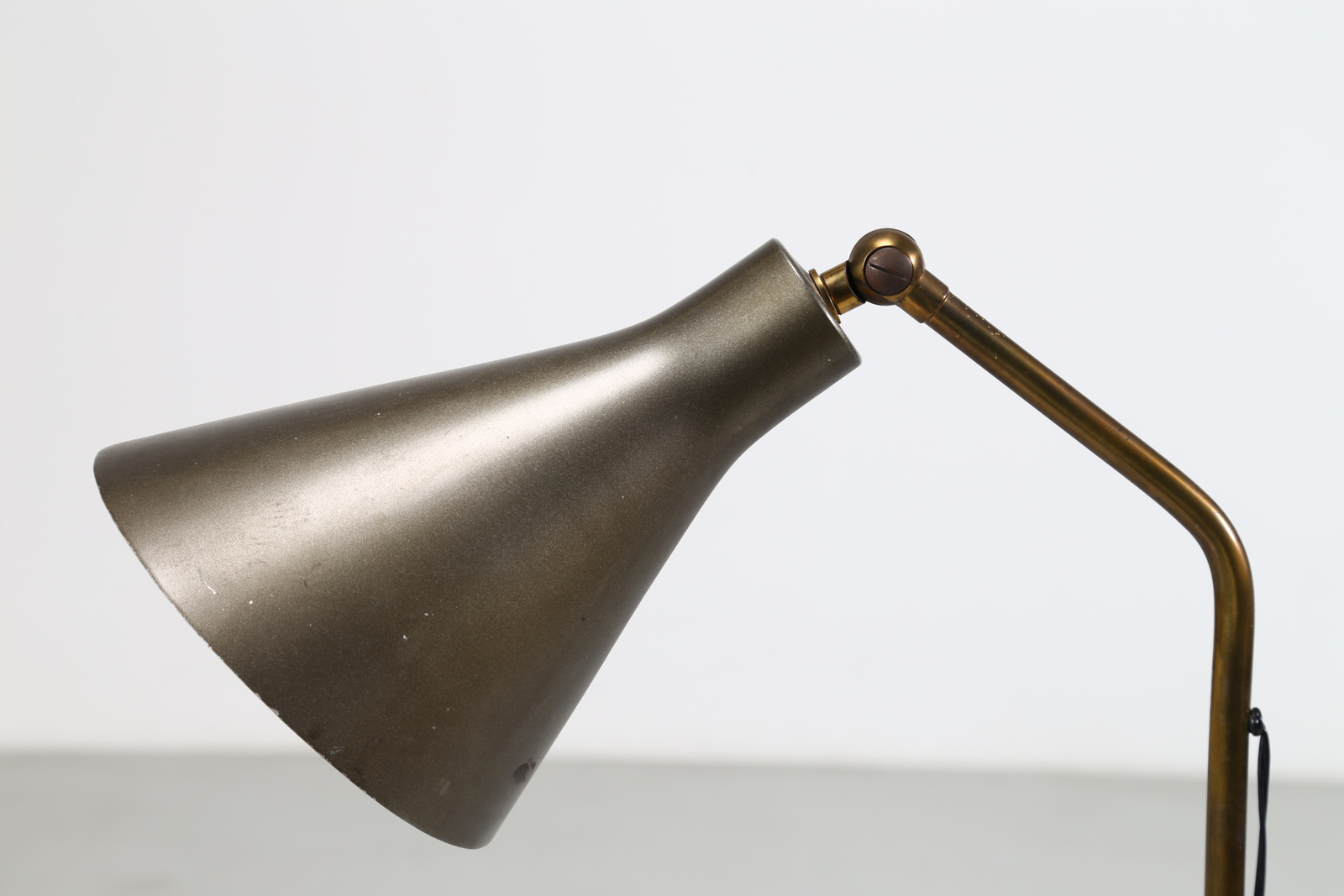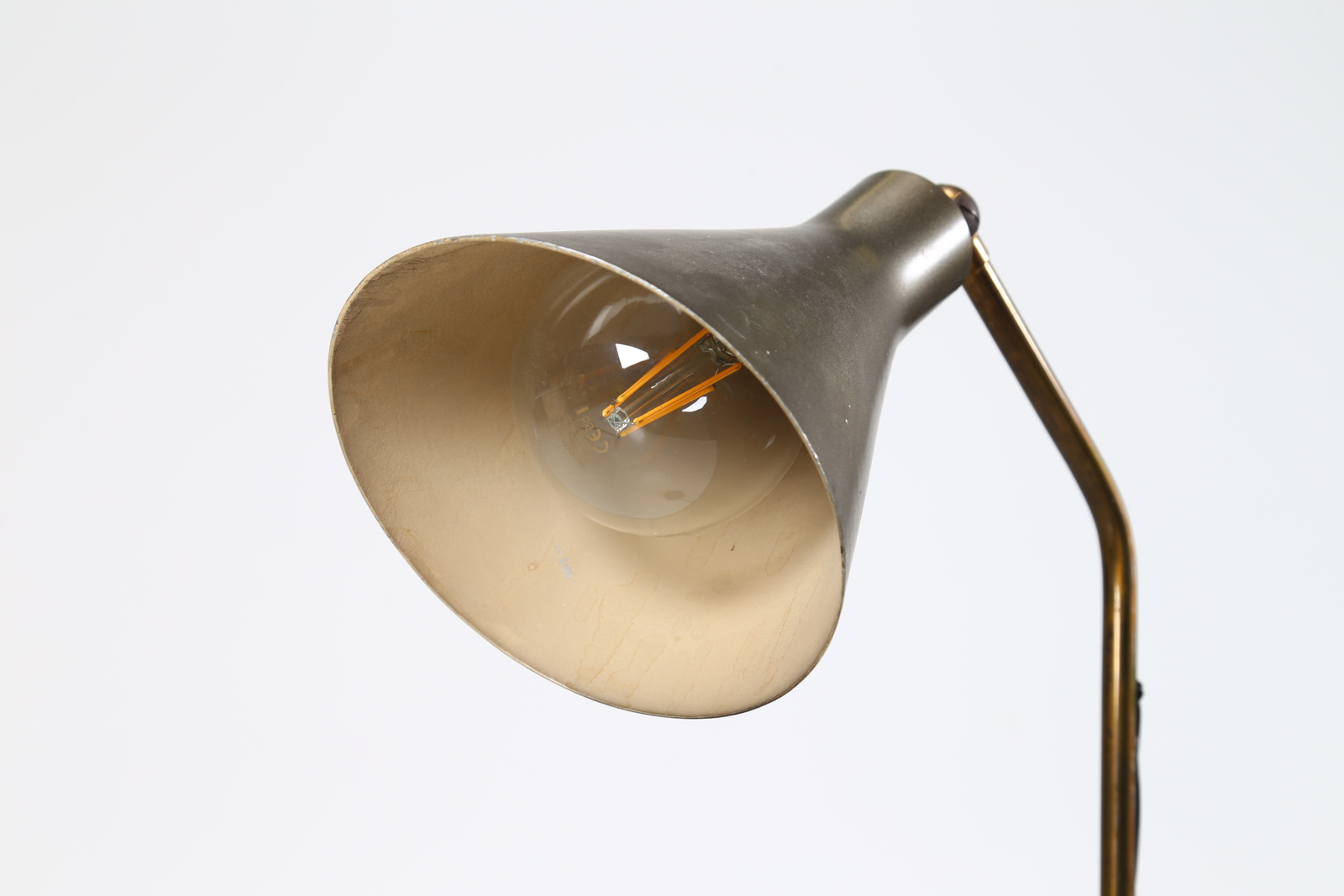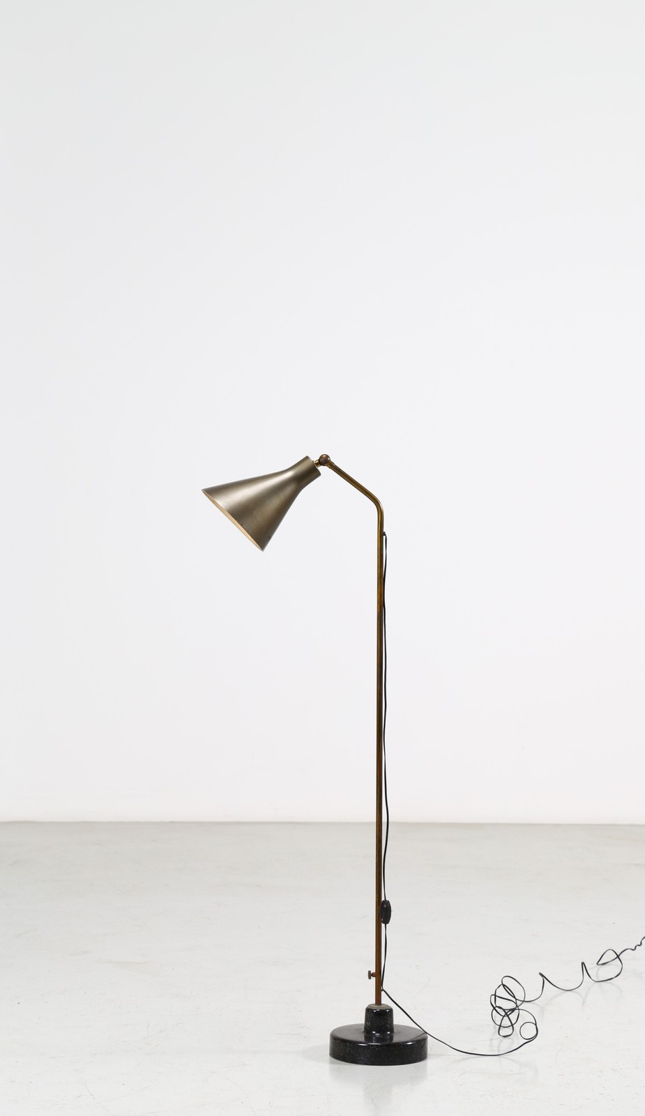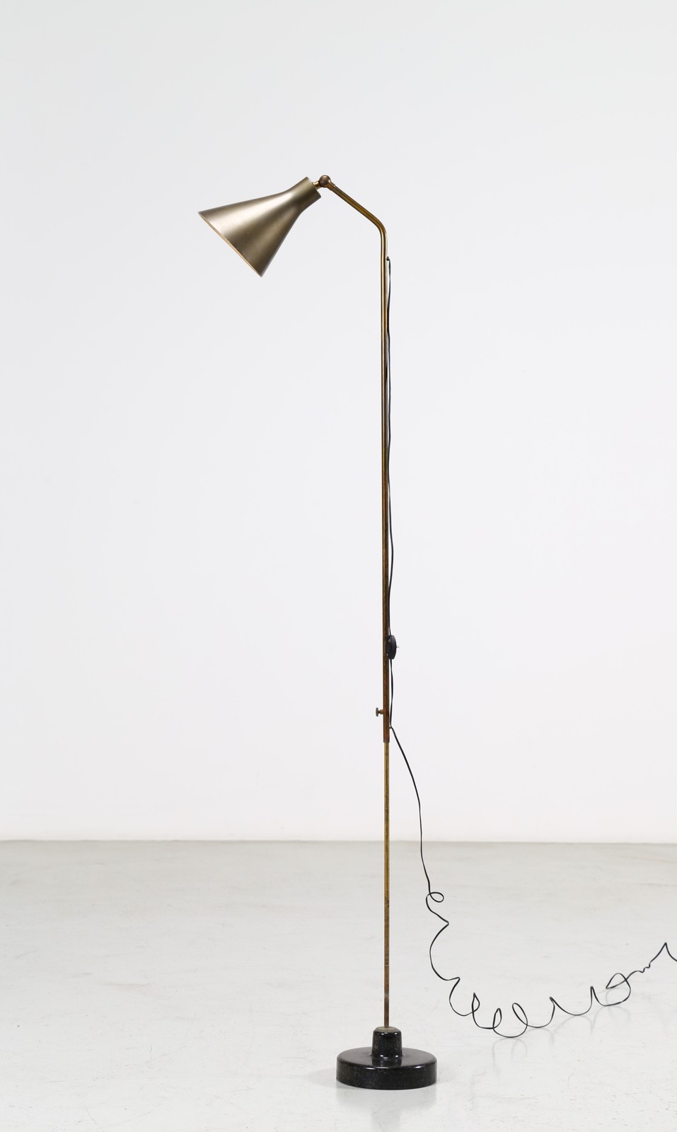 GARDELLA IGNAZIO (1905 - 1999) Floor lamp, mod. Lte 3. . Cm 45,00 x 180,00 x 20,00. Painted metal, brass and marble base, for Azucena, 50s.