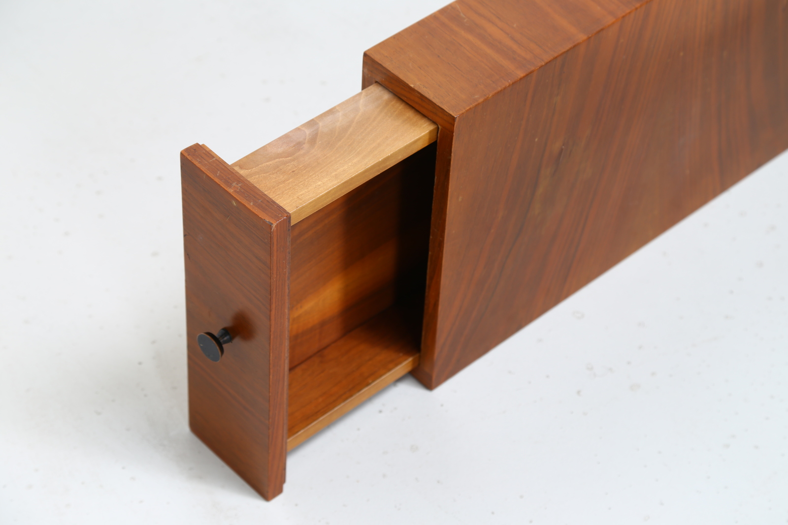 GIOVANNI BATTISTA BASSI Suspended console with mirror. . Cm 132,00 x 15,00 x 40,00. Walnut, metal and glass, 50s, for a furnishing in Florence.
