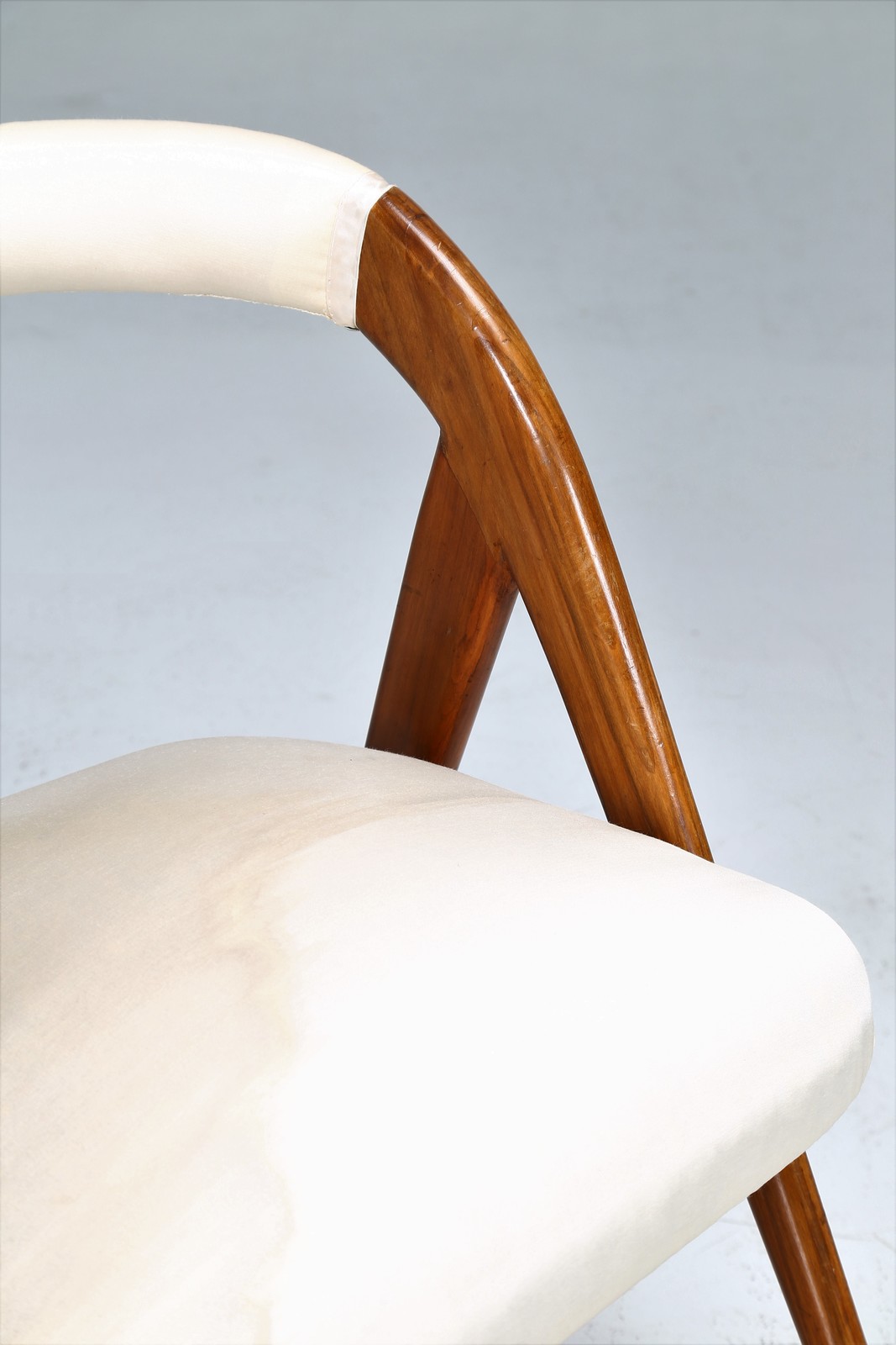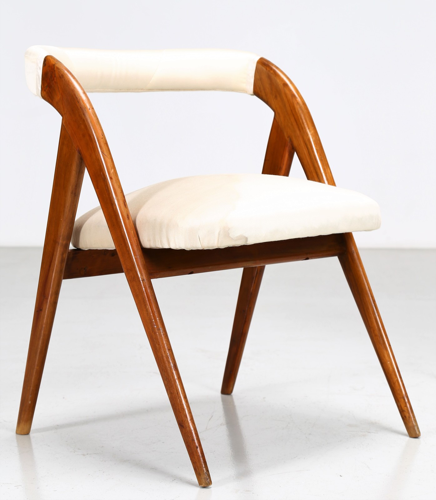 ALBERTI REGGIO EUGENIA Attributed Pair of chair. . Cm 54,00 x 72,00 x 61,00. Walnut and fabric, 50s.