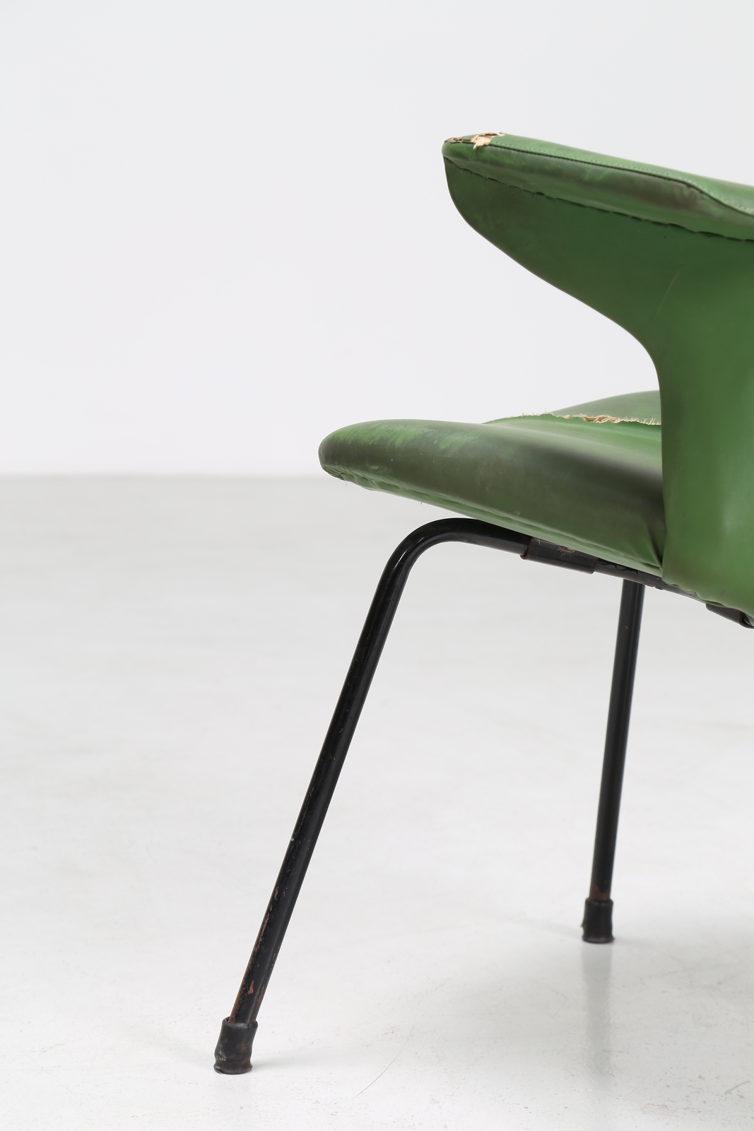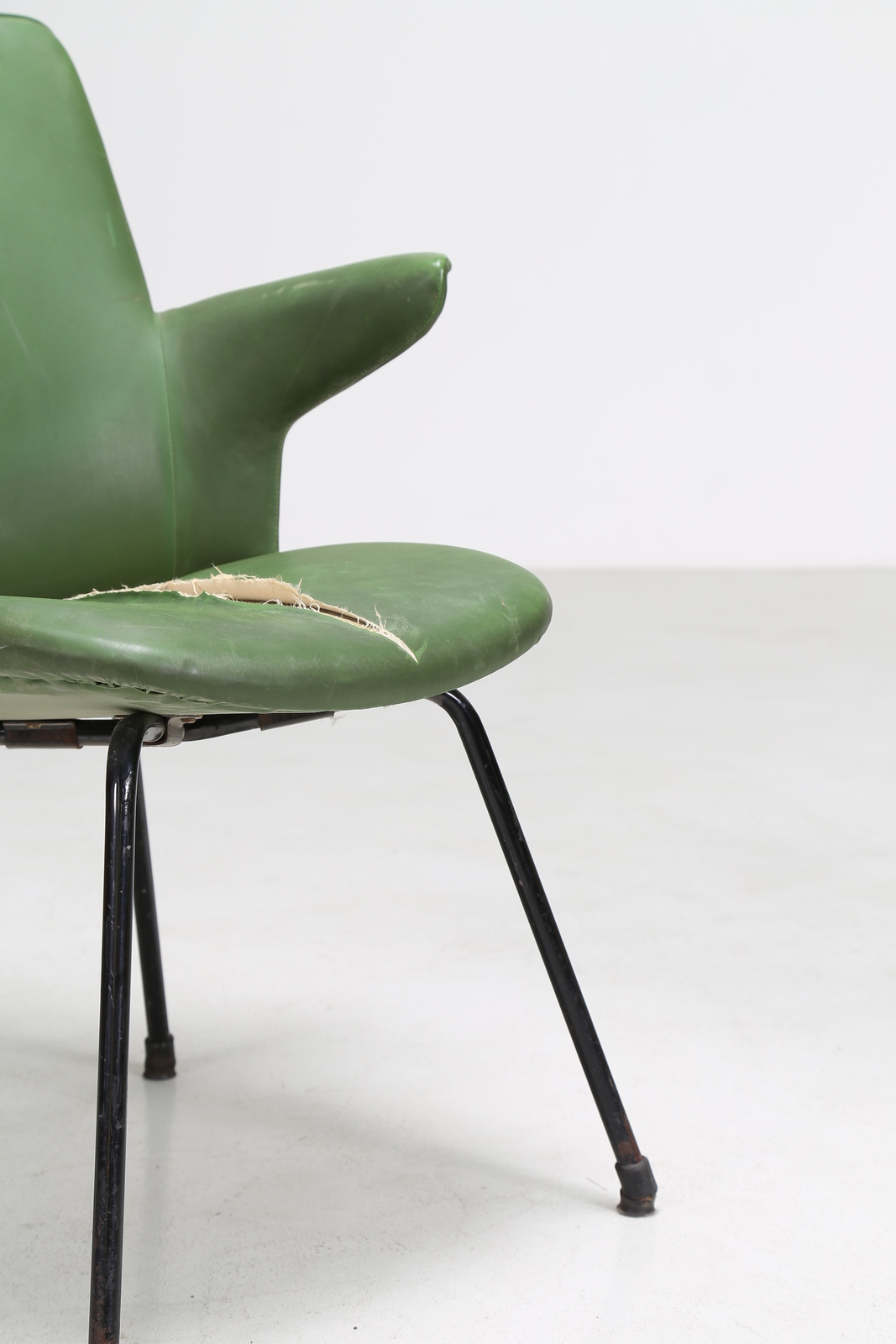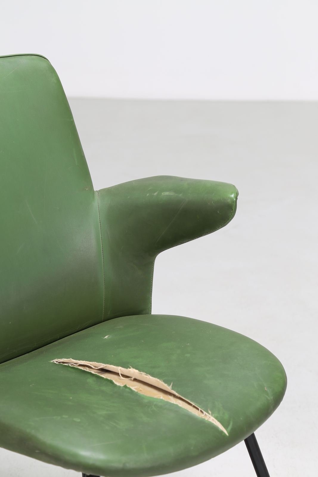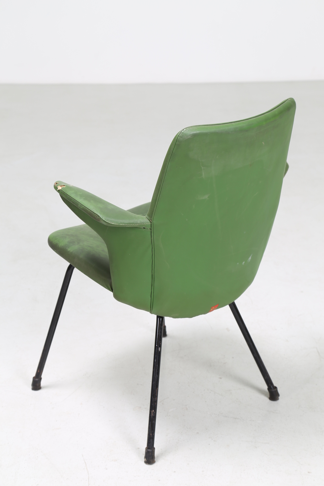 . . Cm 60,00 x 82,00 x 60,00. Pair of small armchairs with shell in multilayer sheet metal and covered with Pirelli and sky, for Rima 50s. Publication: Gastone Rinaldi Designer at Rima edited by Giuseppe and Jacopo Drago, page 177