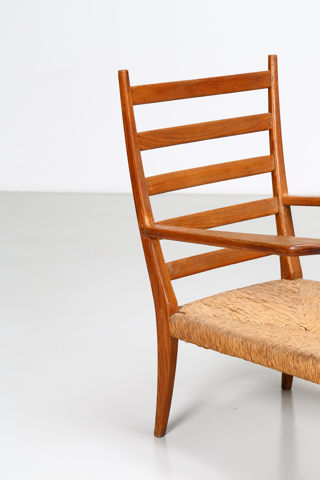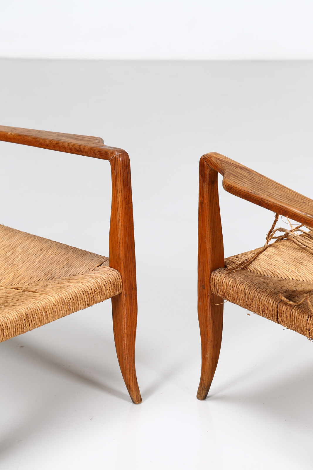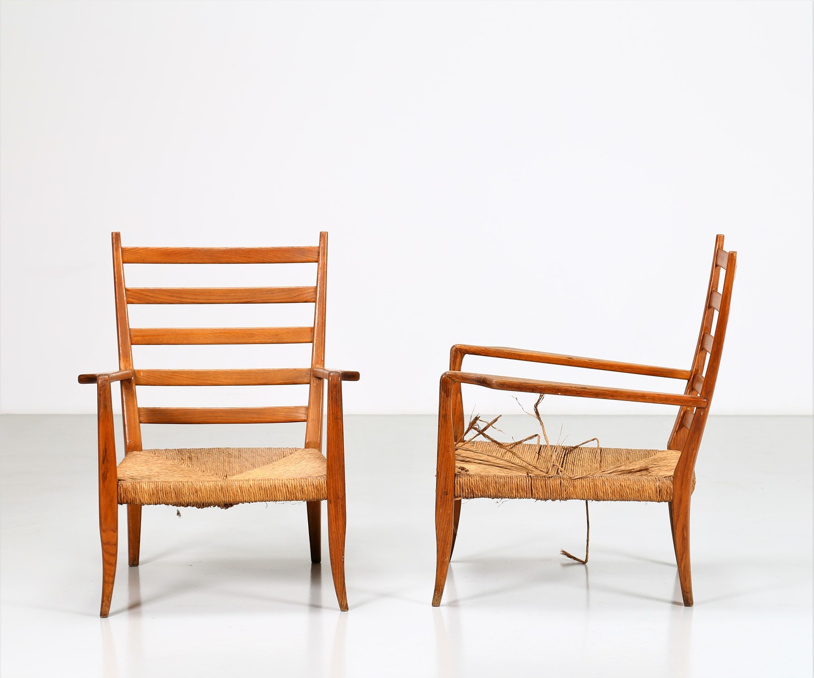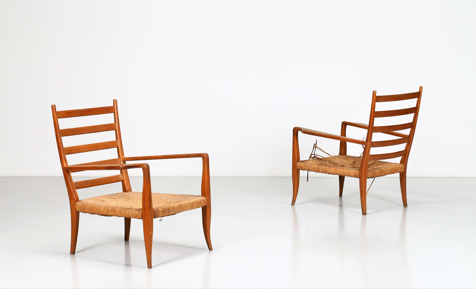 PONTI GIO' (1891 - 1979) Pair of armchairs. . Cm 70,00 x 89,00 x 75,00. Structure in ash wood and straw, for La Rinascente, 30s.