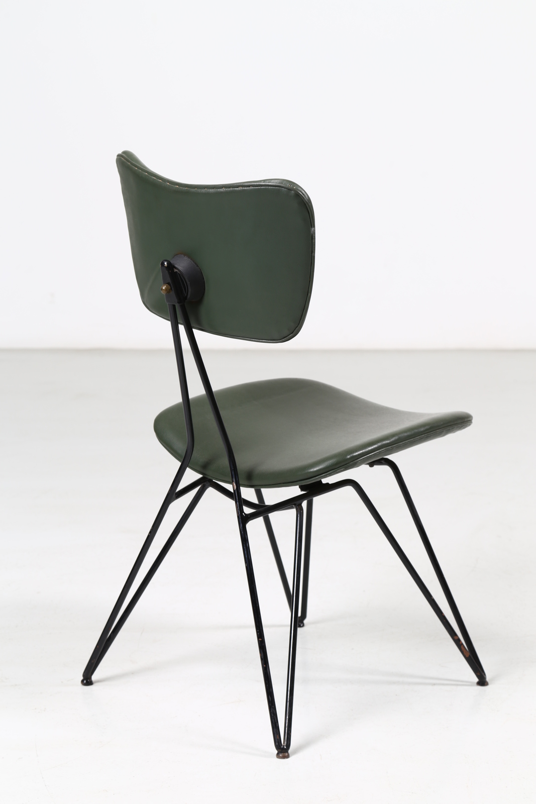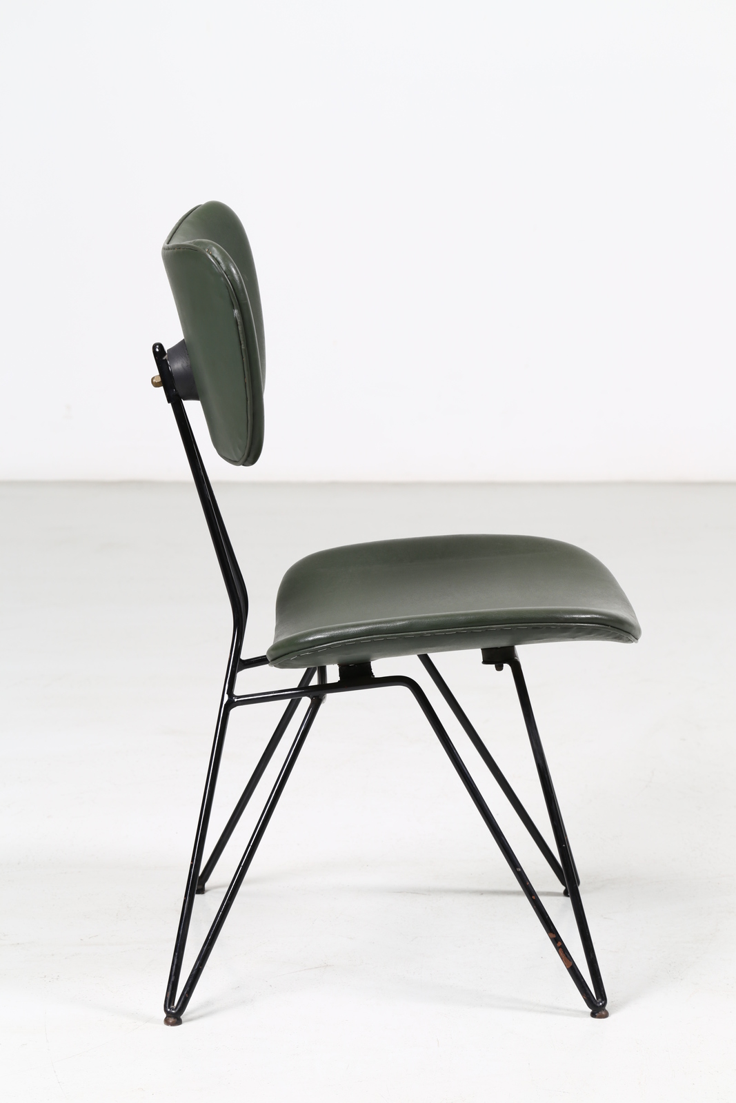 RINALDI GASTONE Sedia mod. DU 10. -. Cm 50,00 x 88,00 x 60,00. Tondino in metallo laccato e skai, per Rima anni 50. Pubblicazione: Gastone Rinaldi Designer alla Rima a cura di Giuseppe e Jacopo Drago, pag. 174