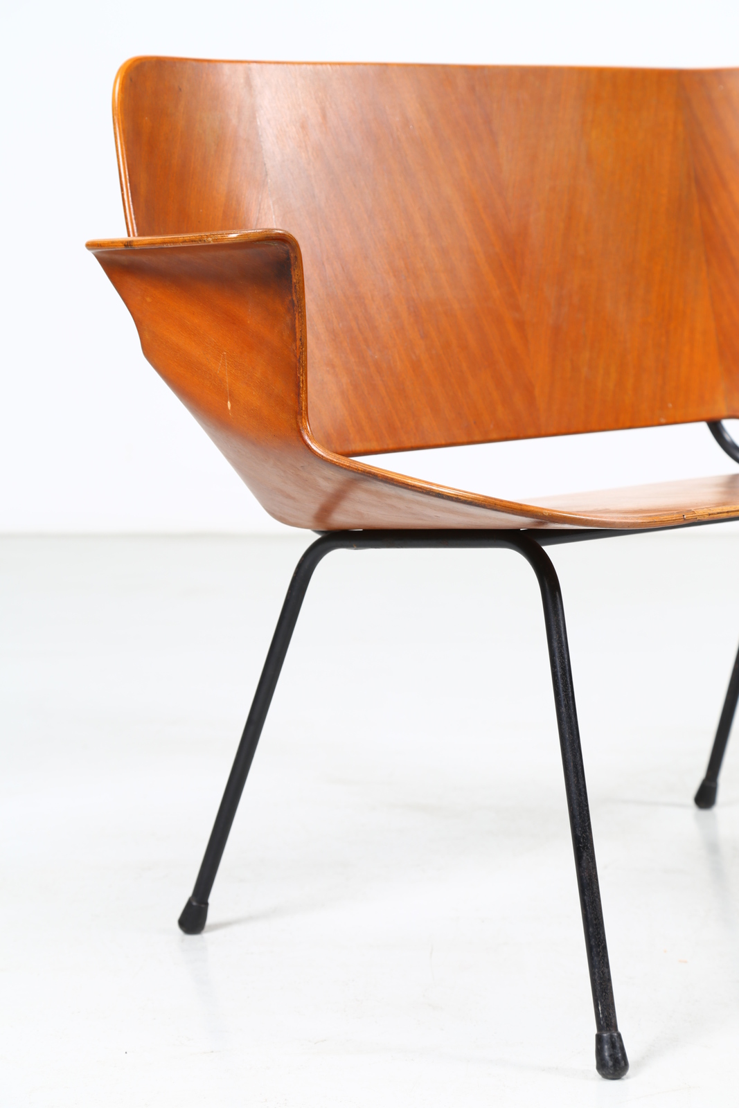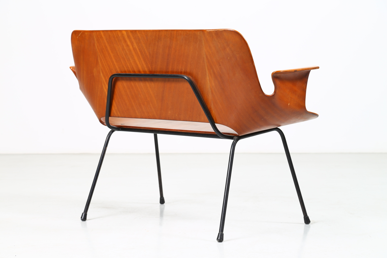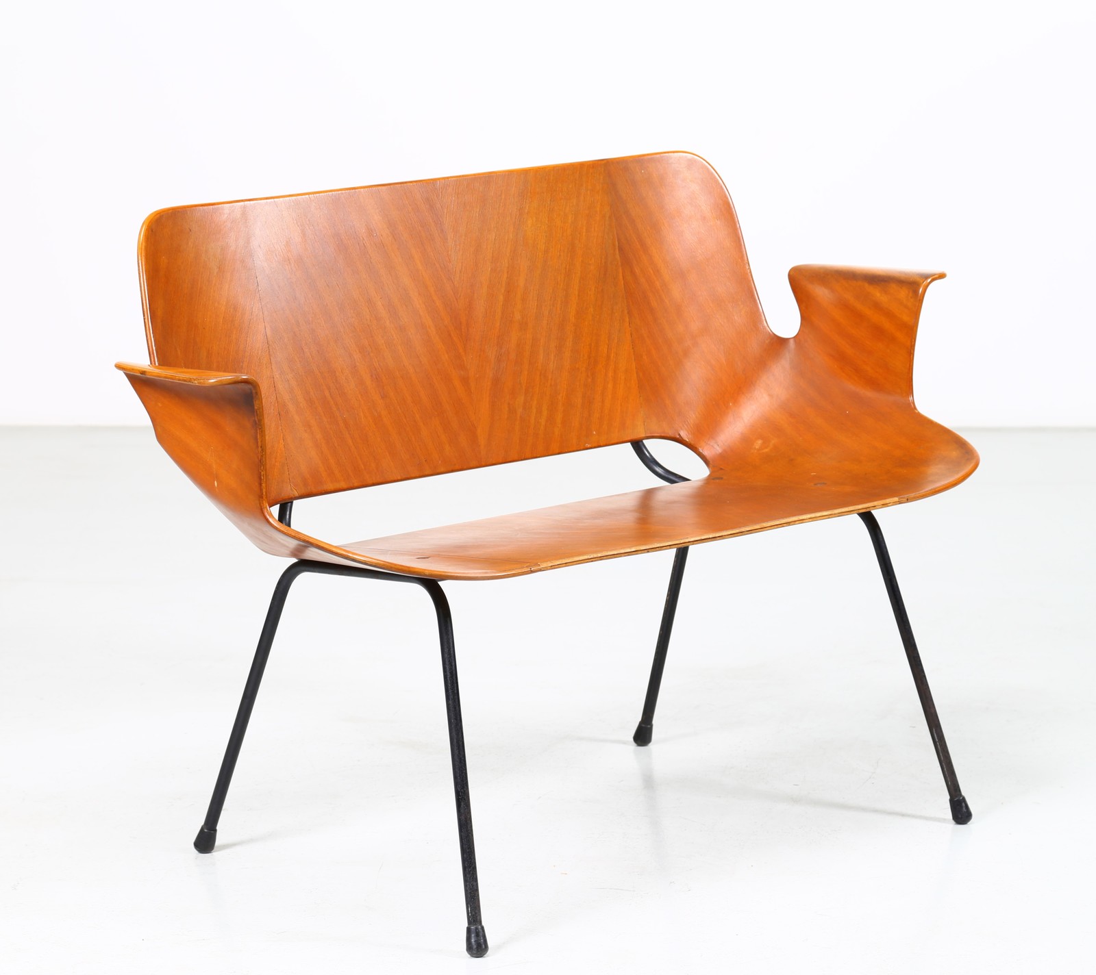 NOBILI VITTORIO (n. 1935) Sofa mod. Medea. . Cm 122,00 x 82,50 x 53,00. Lacquered metal, curved plywood, for Tagliabue, 1955