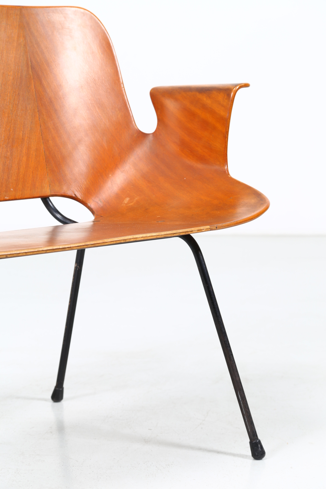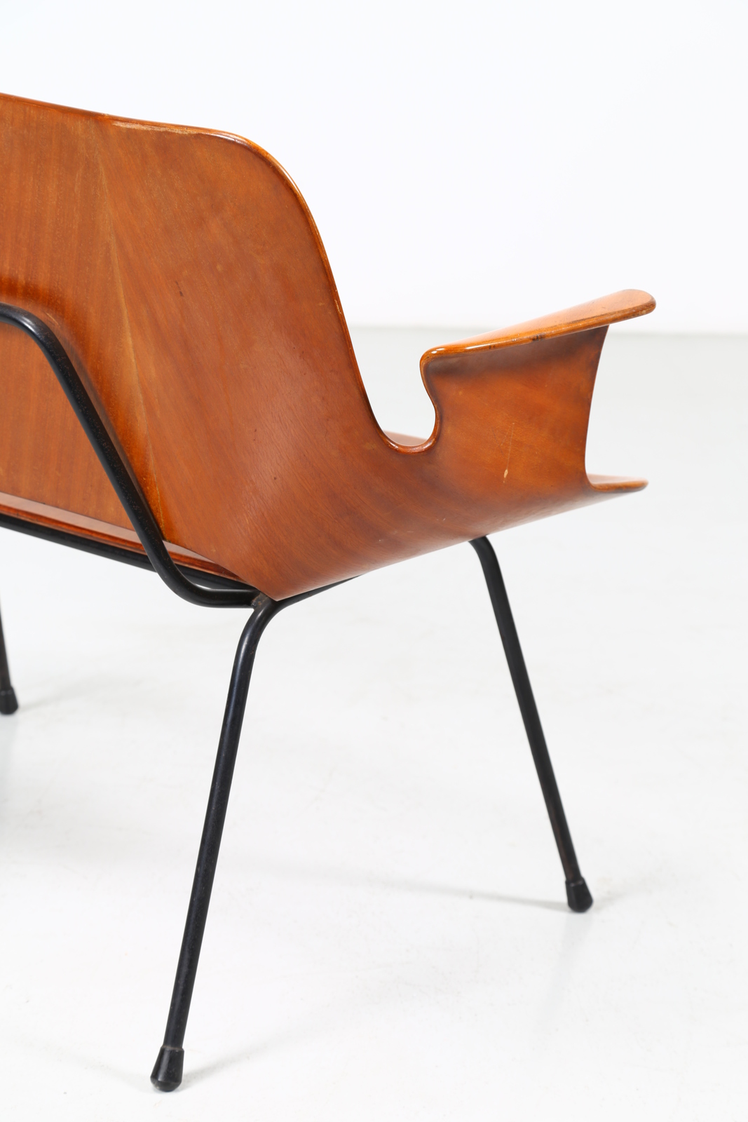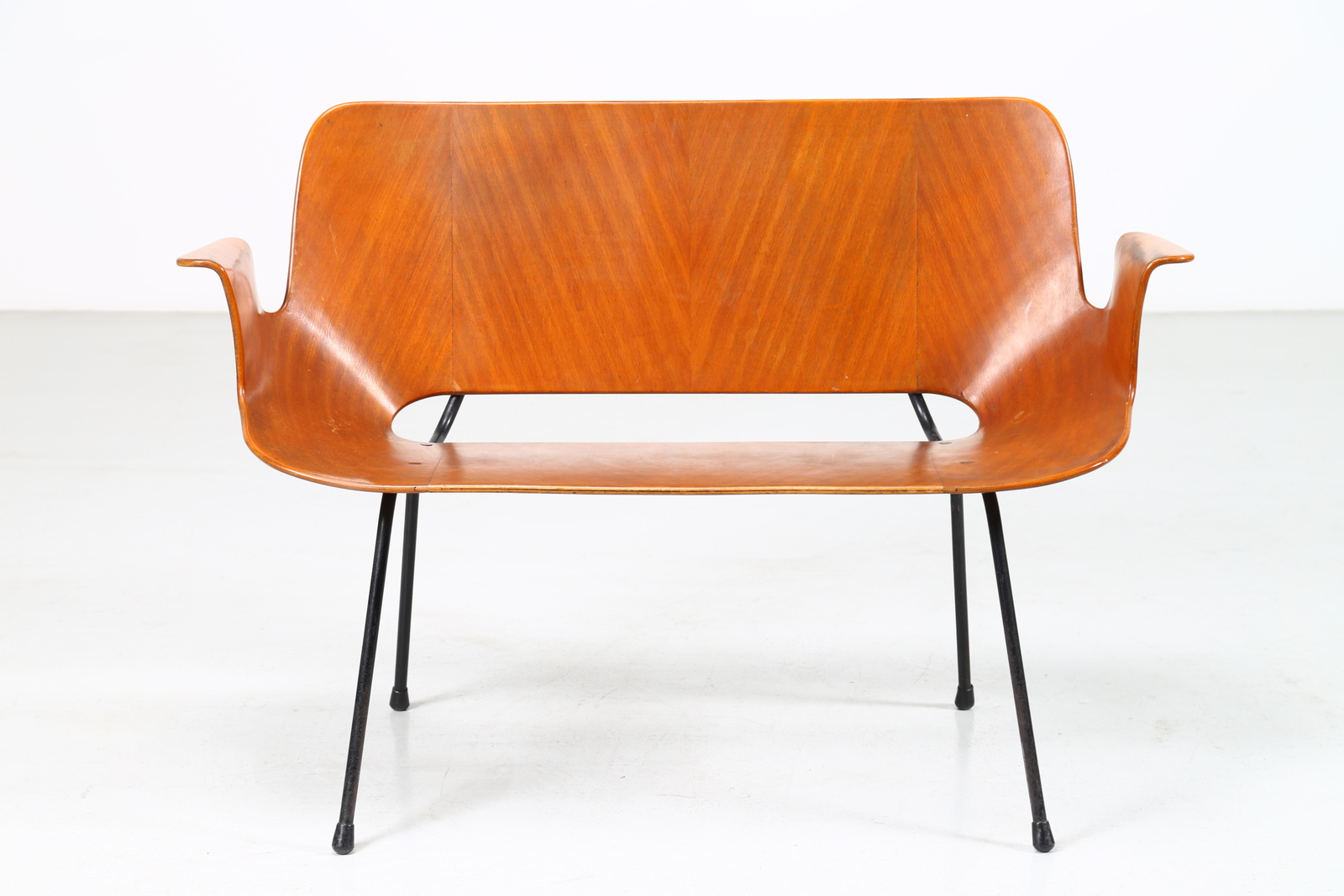 NOBILI VITTORIO (n. 1935) Sofa mod. Medea. . Cm 122,00 x 82,50 x 53,00. Lacquered metal, curved plywood, for Tagliabue, 1955