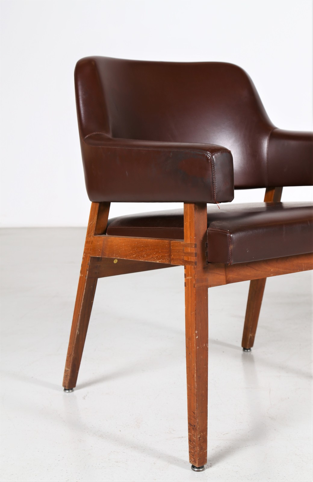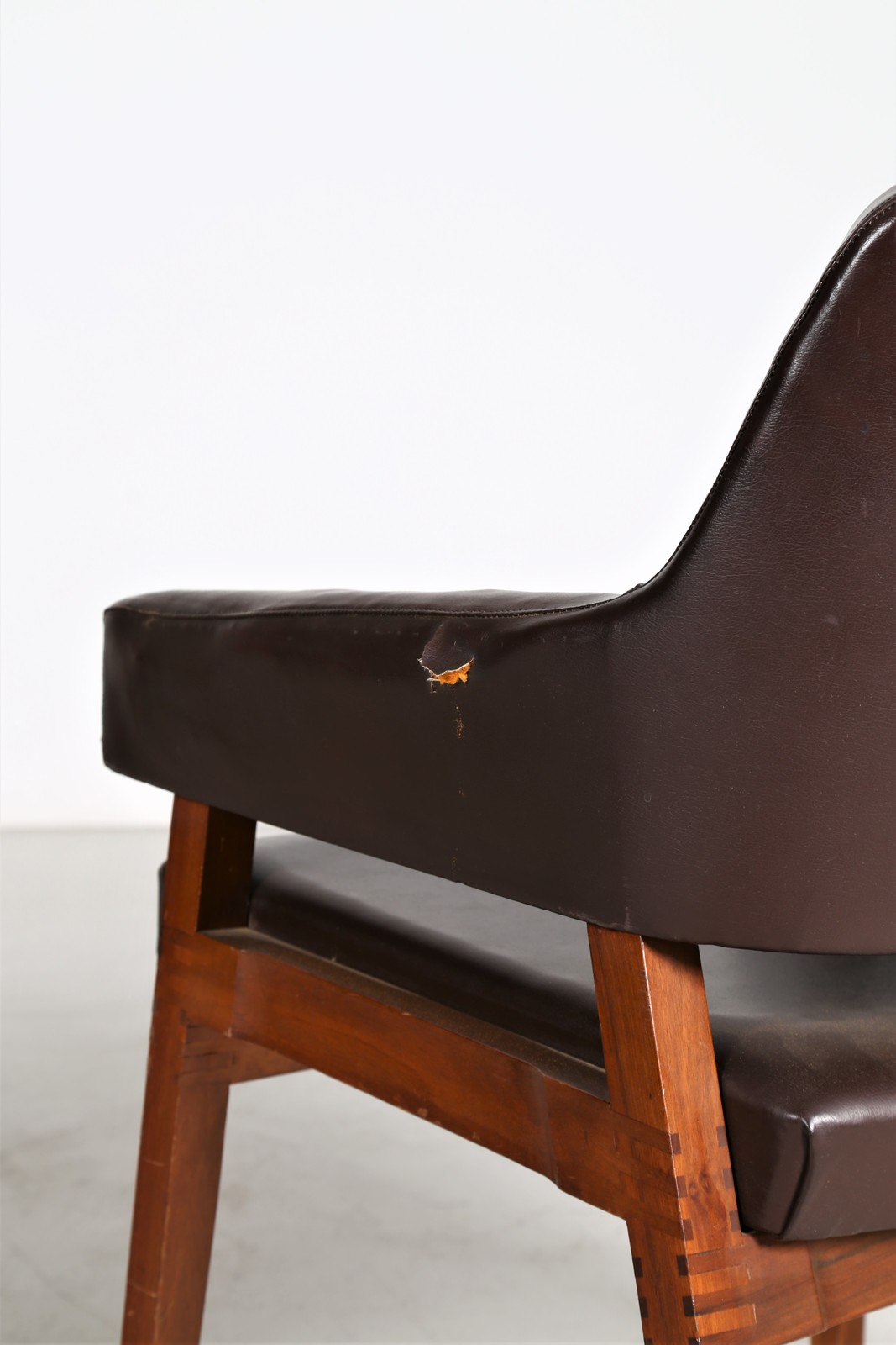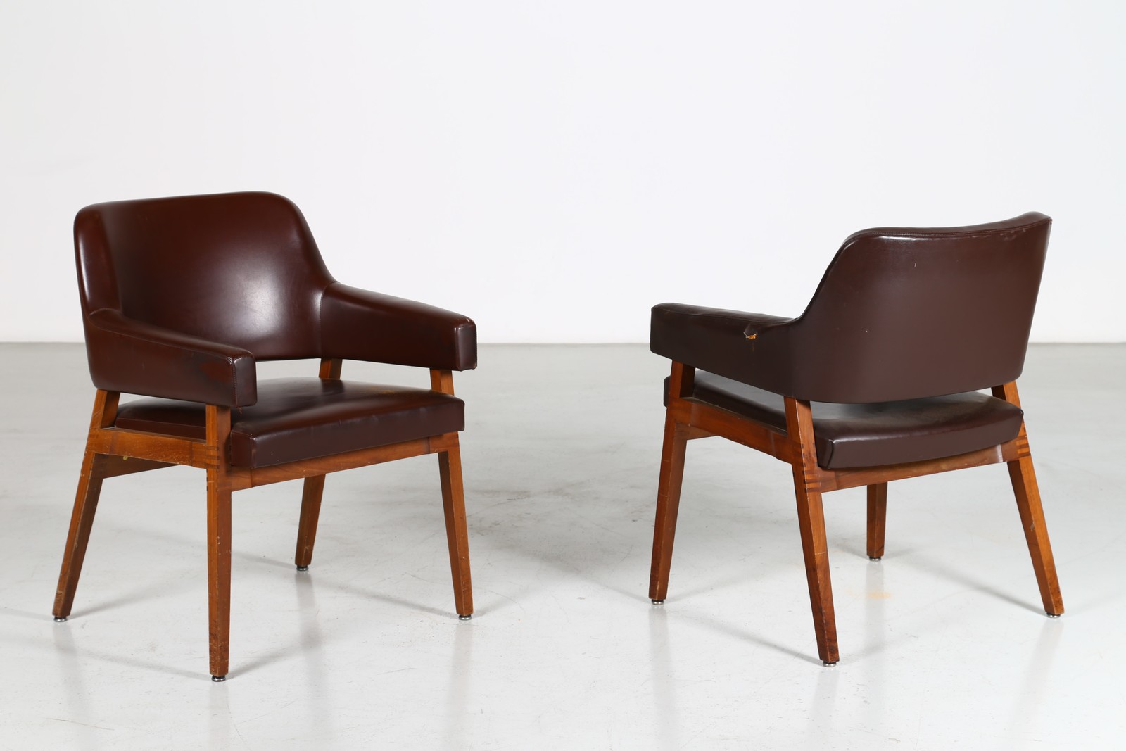 FRATTINI GIANFRANCO (1926 - 2004) Coppia di poltrone mod. 904. . Cm 62,00 x 80,00 x 62,00. Legno di noce e skai originale, per Figli di Amedeo Cassina 1963. Pubblicazioni; Made in Cassina di Giampiero Bosoni; Italian Design Gianfranco Frattini, Edizioni Biblioteca Dell'Immagine