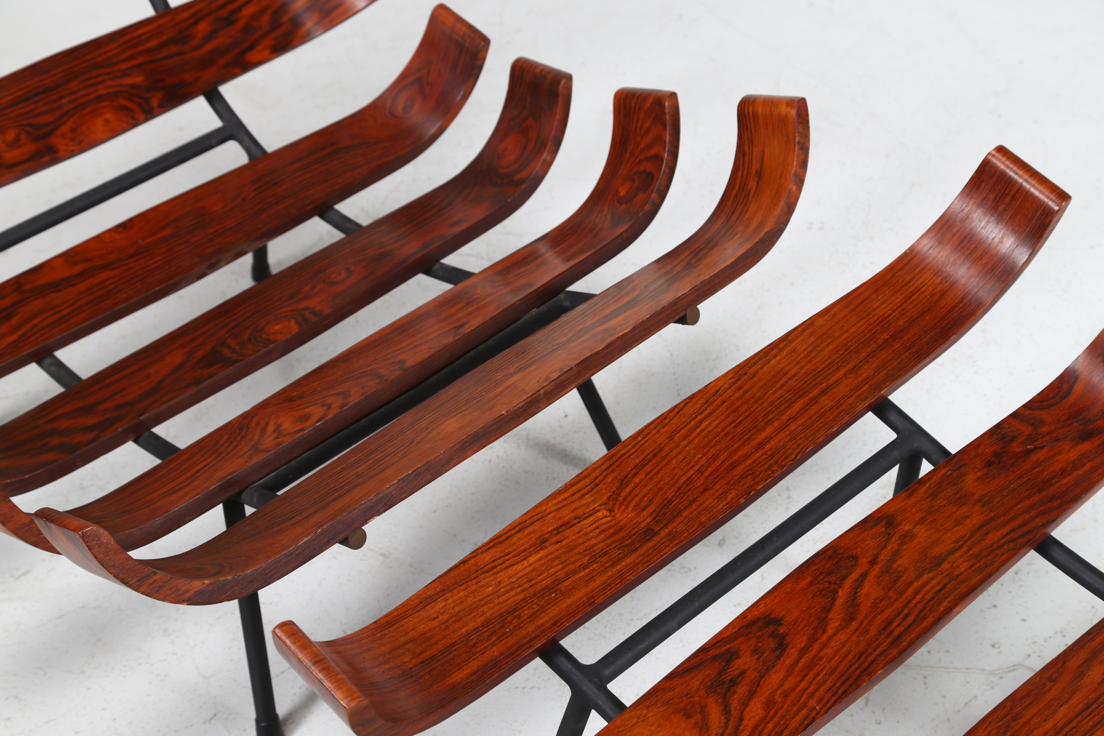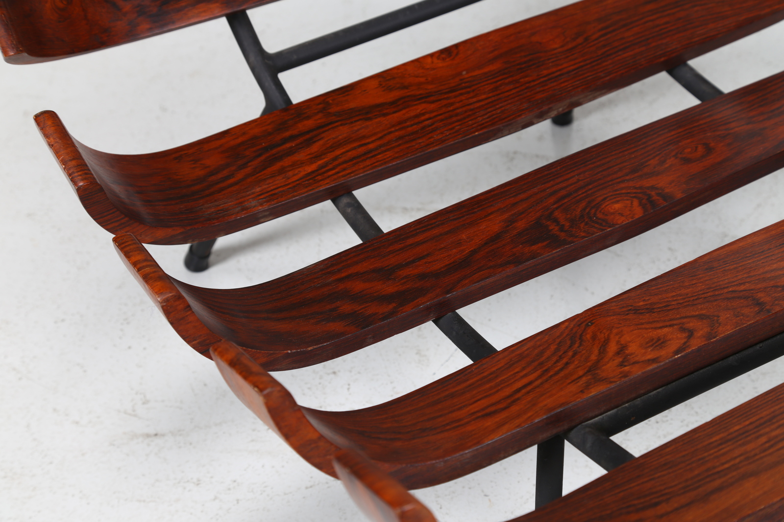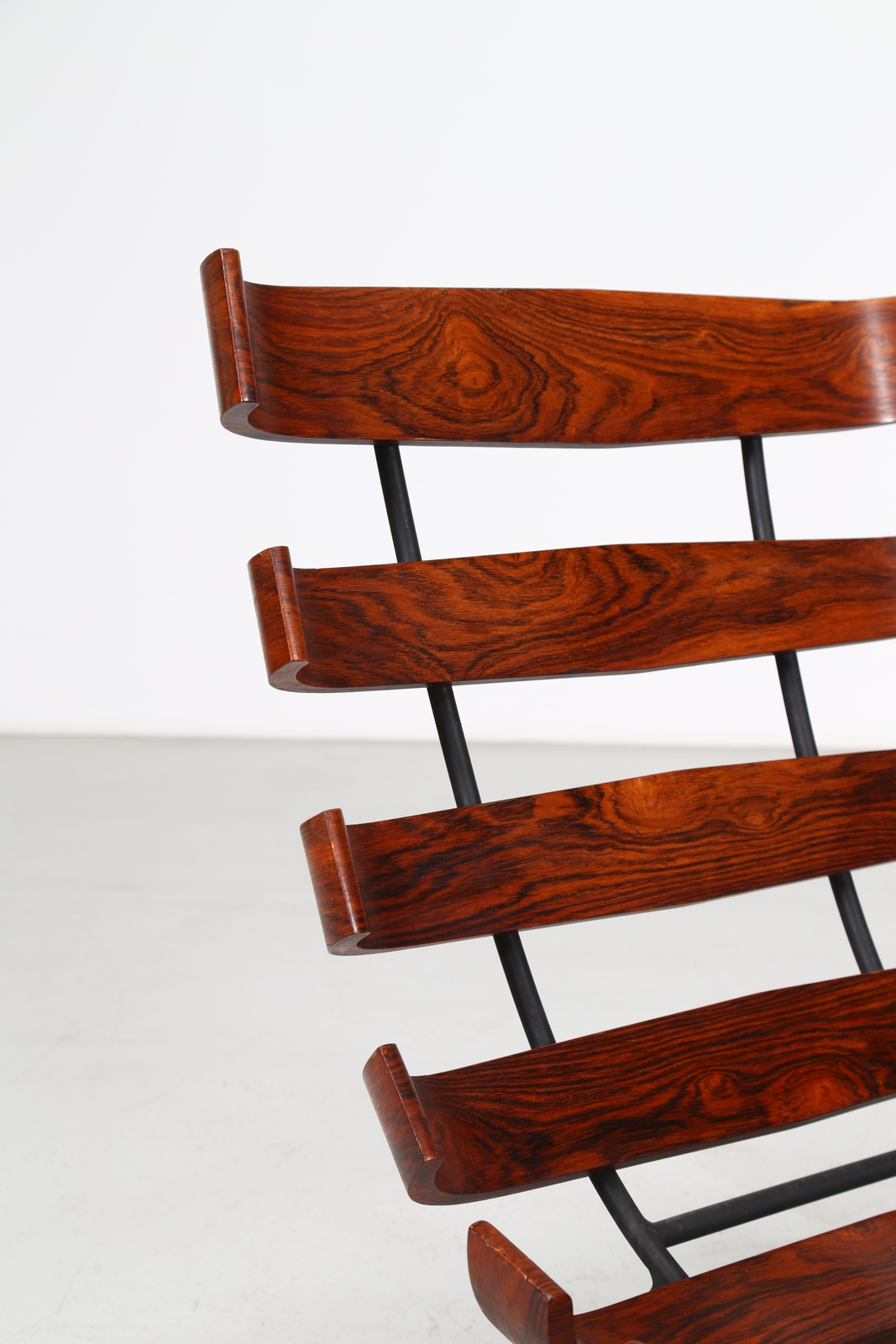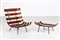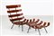 CARLO HAUNER (1927-1997) & MARTIN HESLER (1913-1977) Armchair and pouf. . Cm 70,00 x 81,00 x 80,00. Lacquered iron structure and curved teak plywood, for FORMA, 1960.