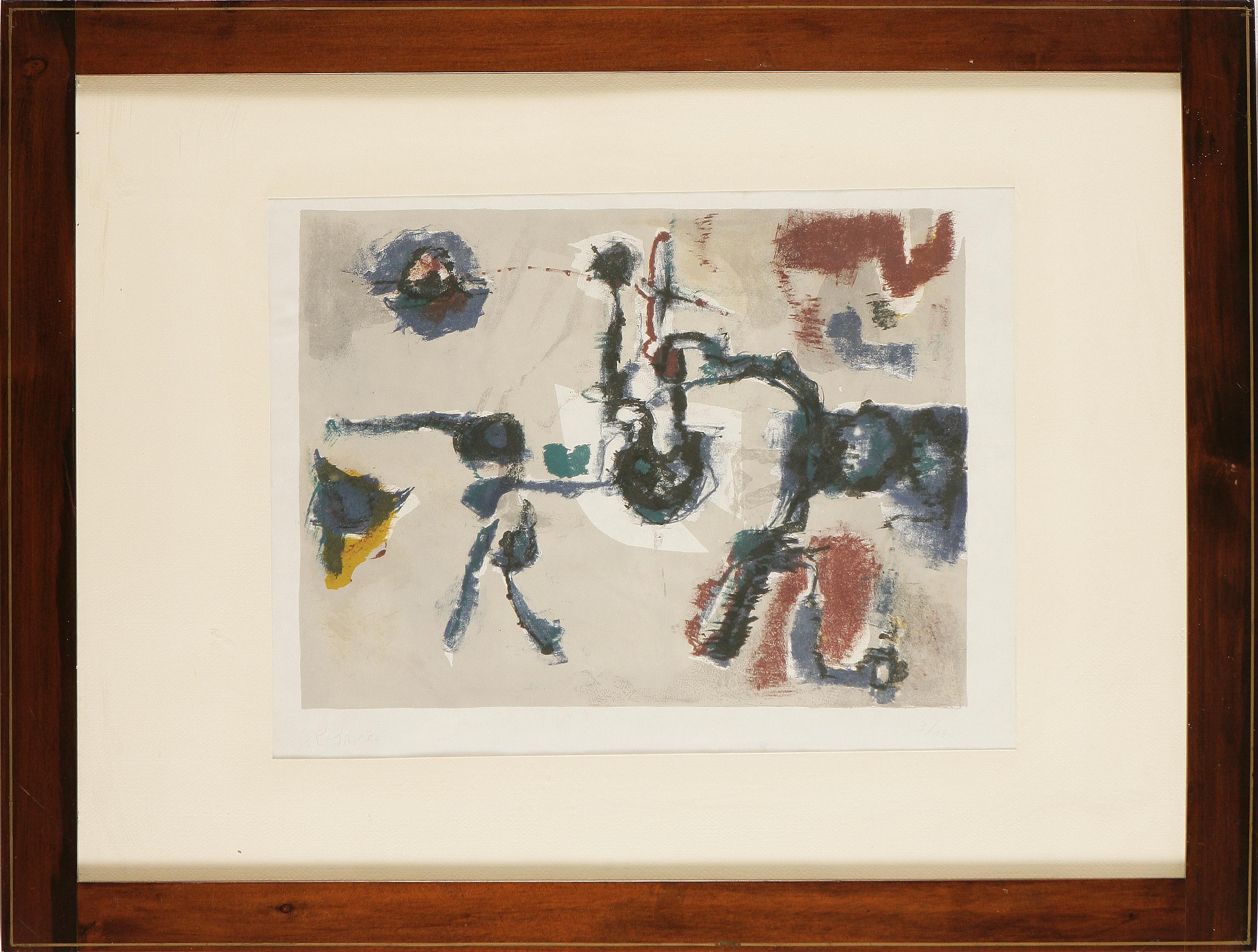 BIROLLI RENATO (1905 - 1959) Senza titolo. Litografia. Cm 60x40. Misure della stampa: altezza 36 cm, larghezza 48 cm.Tir. 3/160 a matita in basso a destra. Firma a matita in basso a destra. Cornice presente.