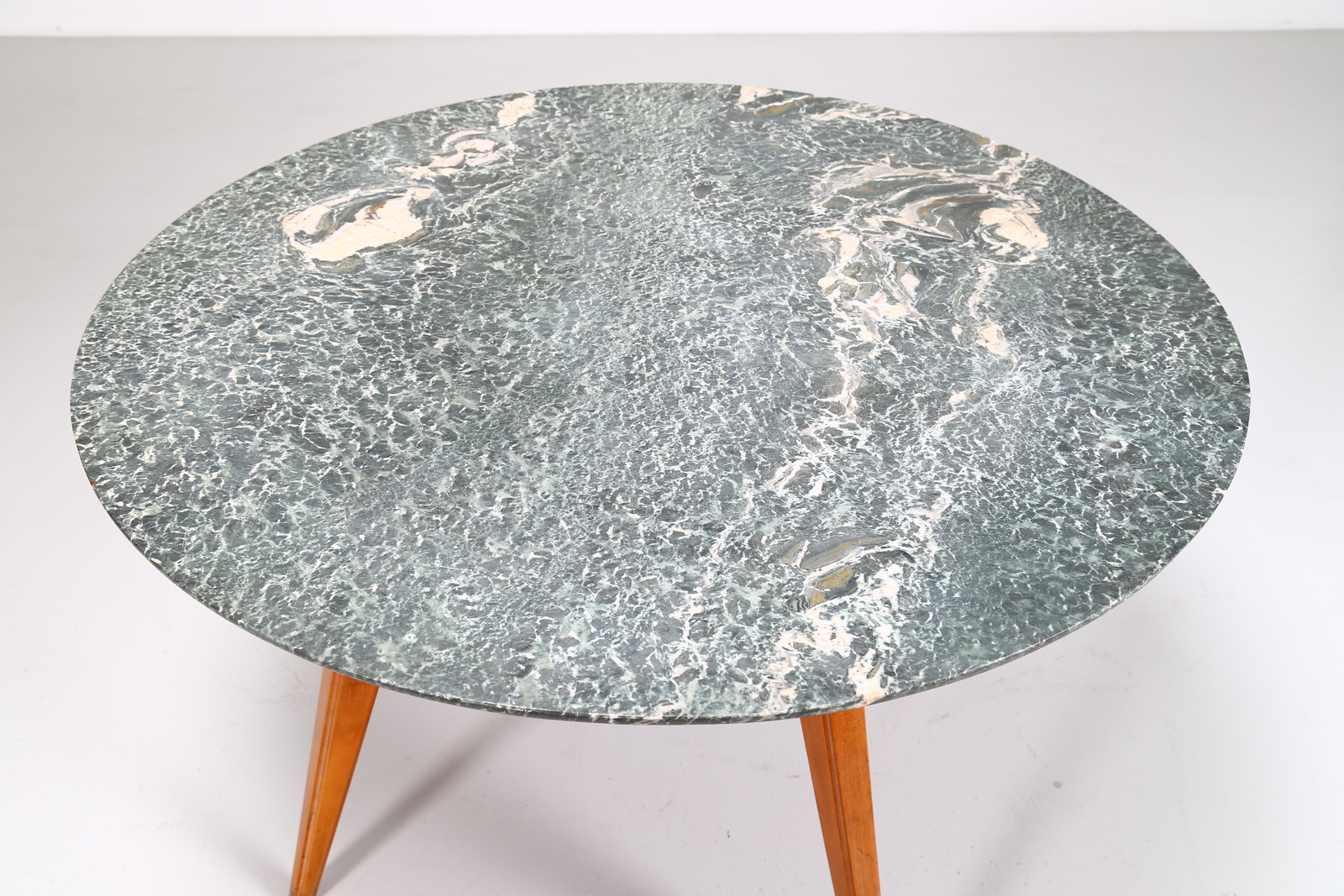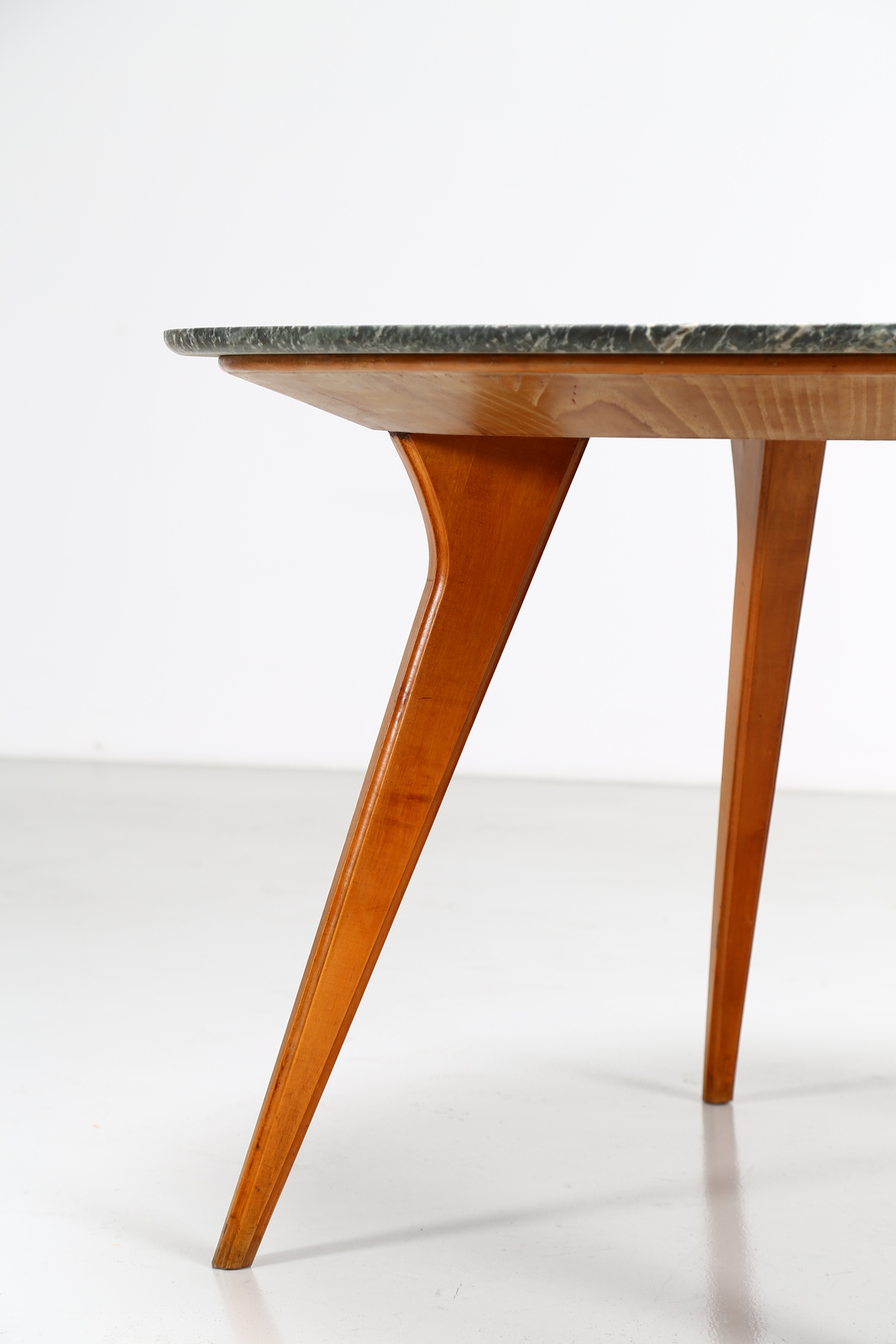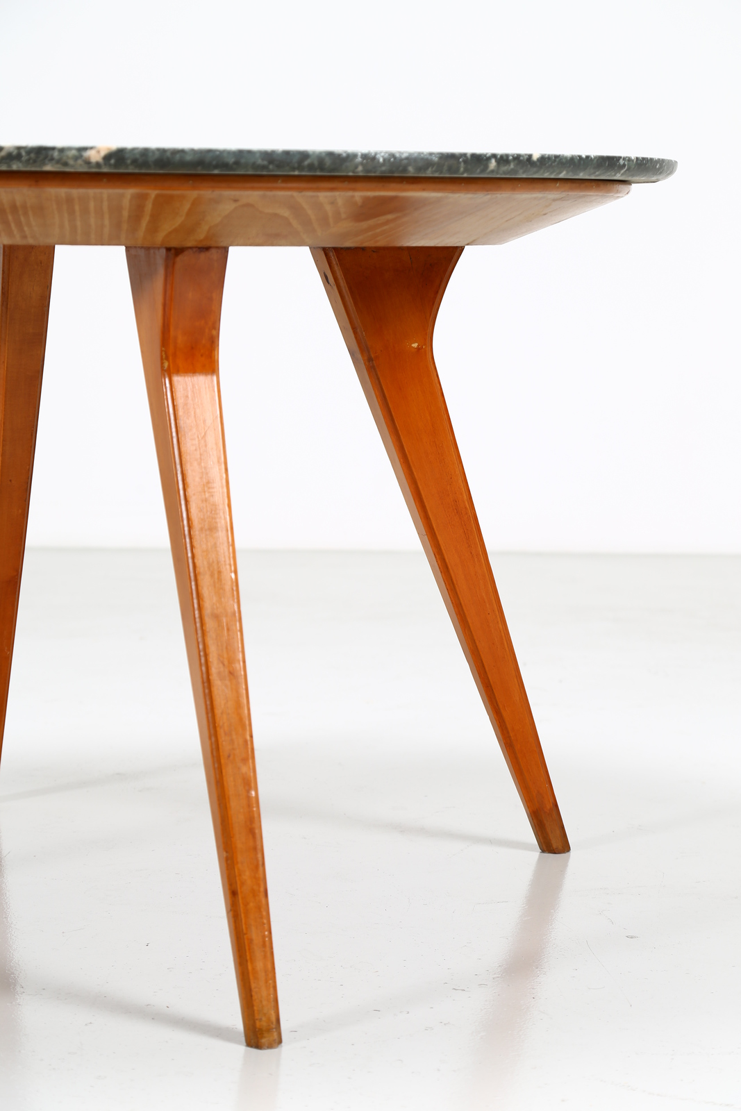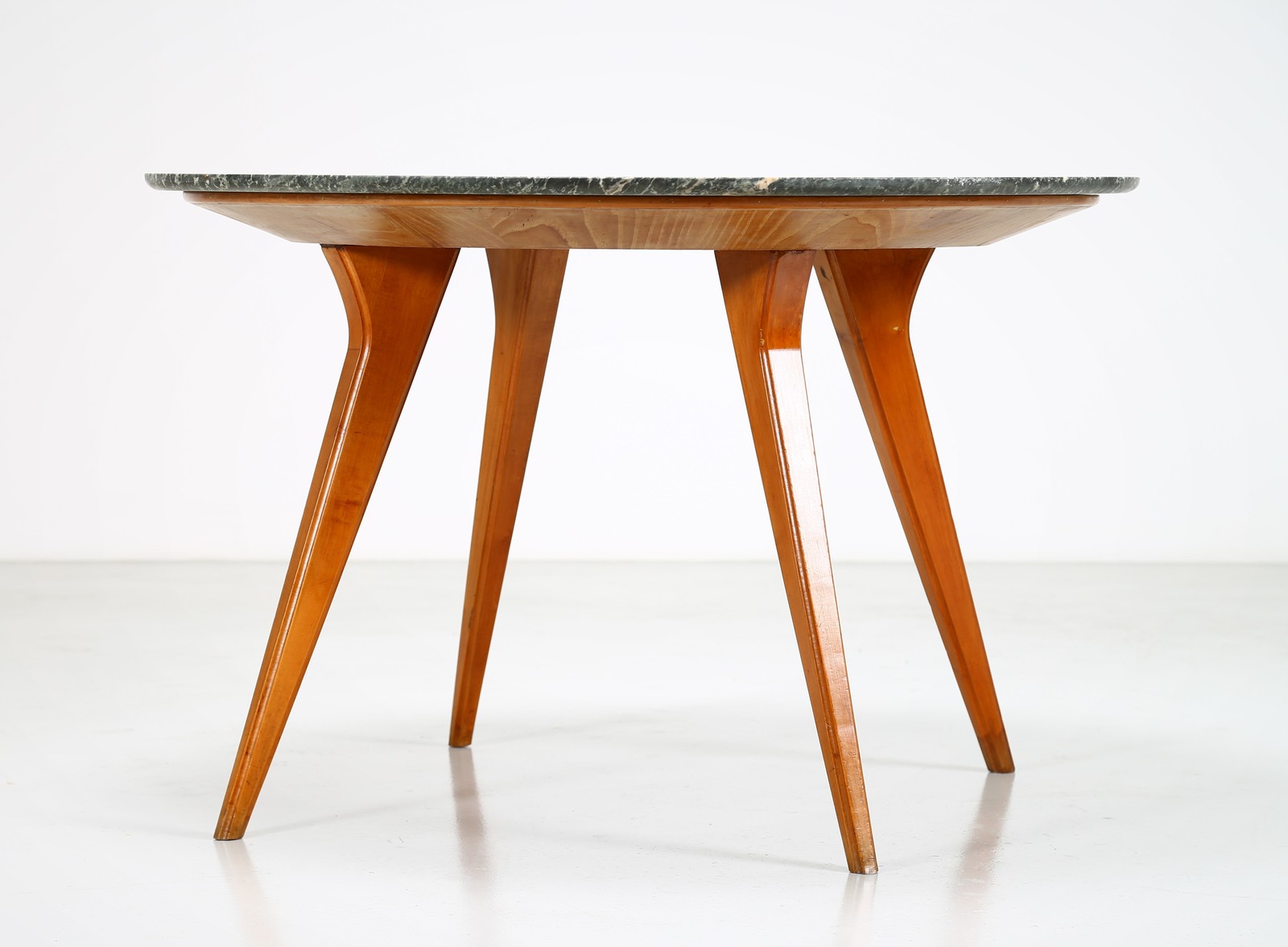 PONTI GIO' (1891 - 1979) Round table. . Cm 120,00 x 77,00 x 120,00. Beechwood with Africa green marble top, for Dassi, 1950.