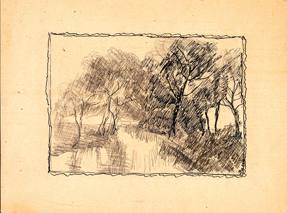 Giacomo Balla, Pini a Villa Borghese 1950 ca Inchiostri e matita su cartoncino, cm 22,7x30