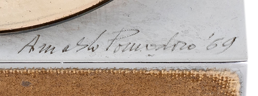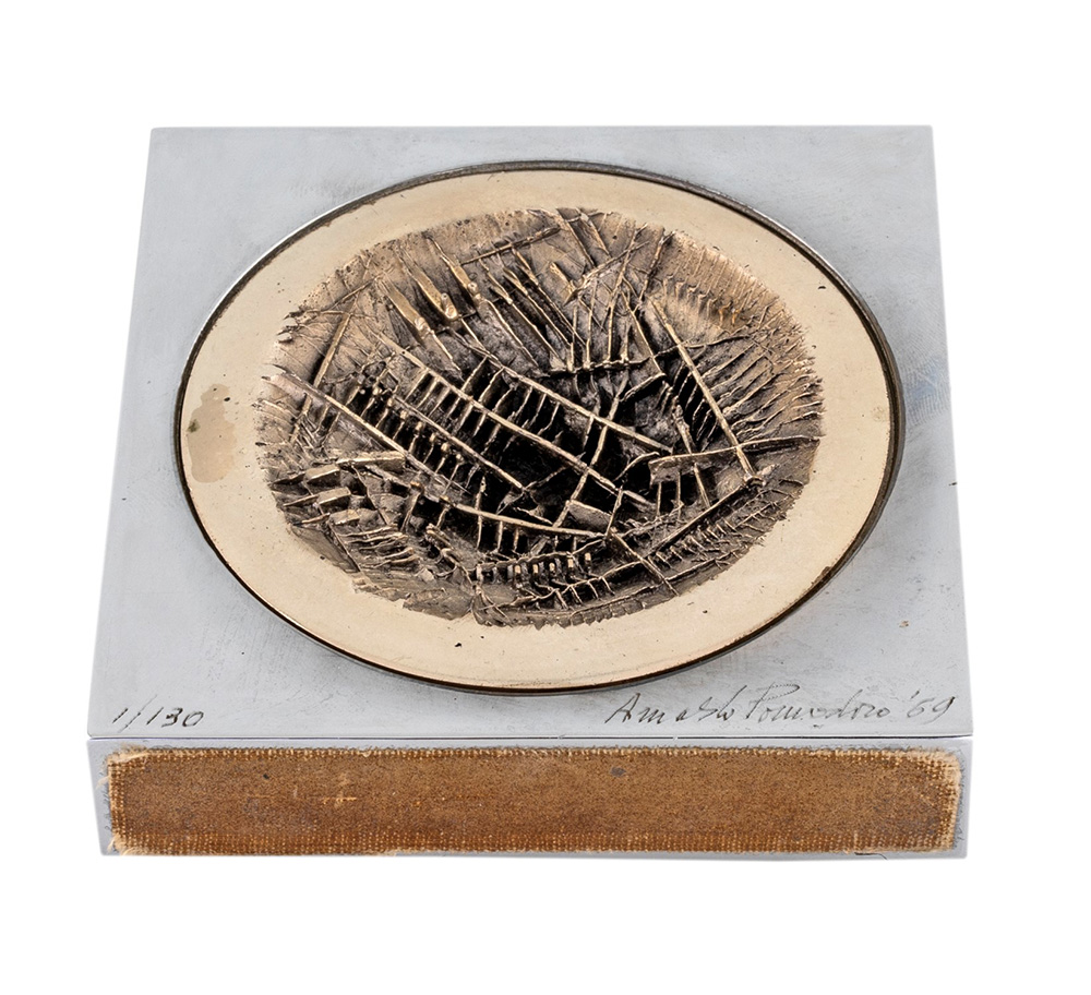 Arnaldo Pomodoro, Piccola Scultura 1969 Scultura (Argento su ottone cromato), cm 10x10x2