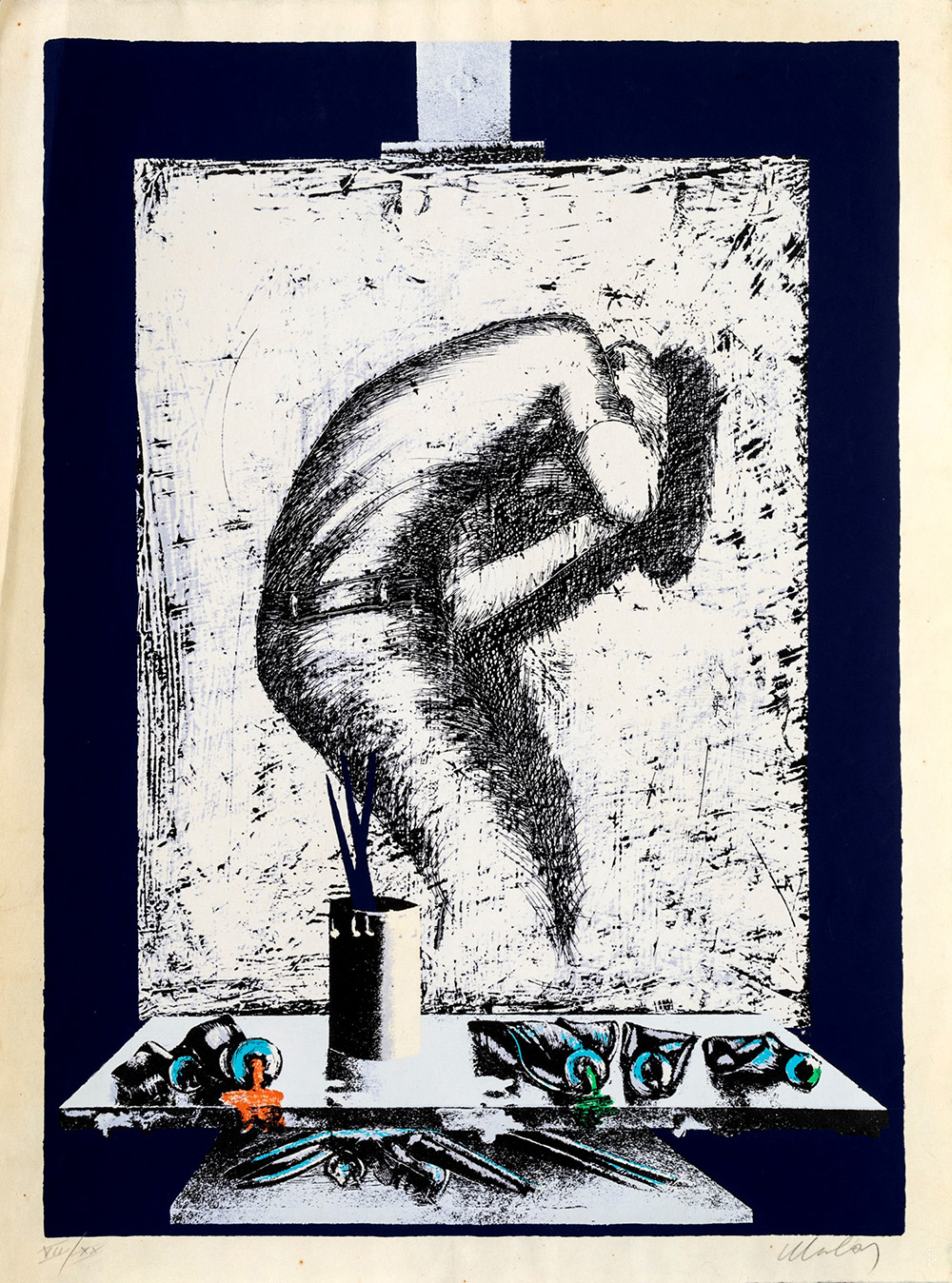 Franco Mulas, LO STUDIO DEL PITTORE Litografia, cm 60x45