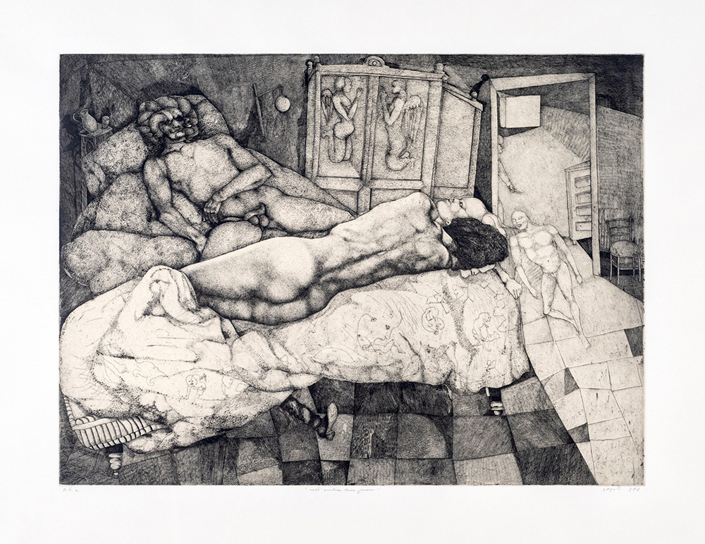 Ugo Attardi, Nell'ombra dormi suoni 1980 Acquaforte/Acquatinta, cm 70x100